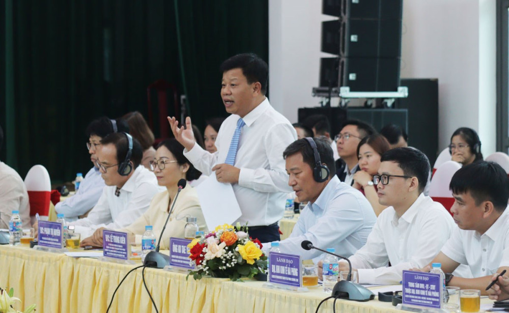 Đồng chí Lê Trung Kiên, Uỷ viên Ban Thường vụ Thành uỷ, Trưởng ban Ban quản lý Khu Kinh tế Hải Phòng phát biểu tại Hội thảo