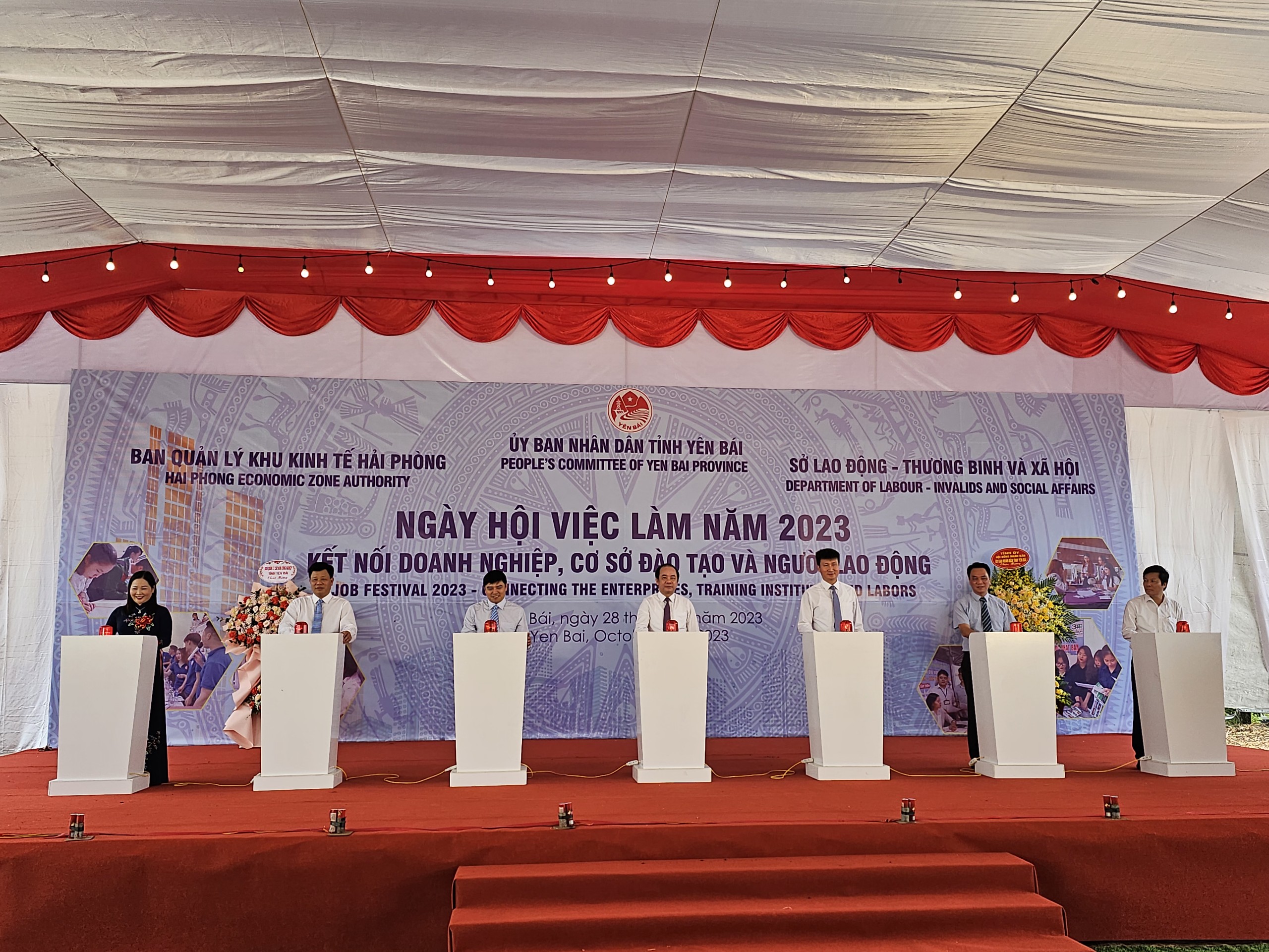 Tham dự ngày hội việc làm, kết nối cơ sở đào tạo và người lao động năm 2023 có lãnh đạo Cục Việc làm, Tổng địa phương Giáo dục nghề nghiệp, Bộ Lao động – Thương binh và Xã hội; lãnh đạo Ban quản lý Khu kinh tế Hải Phòng; Sở Lao Động – Thương Bình và Xã hội Hải Phòng; Lãnh đạo Hiệp hội Doanh nghiệp Hàn Quốc tại Hải Phòng. Cùng đó là sự trợ giúp của gần 100 tổ chức, đơn vị, doanh nghiệp trong và ngoài tỉnh, các doanh nghiệp trên địa bàn TP. Hải Phòng tham gia và có gian hàng tại ngày hội; gần 3.500 người lao động và em học sinh, sinh viên đến từ các cơ sở giáo dục nghề nghiệp, các trường THPT trên địa bàn tỉnh Yên Bái.