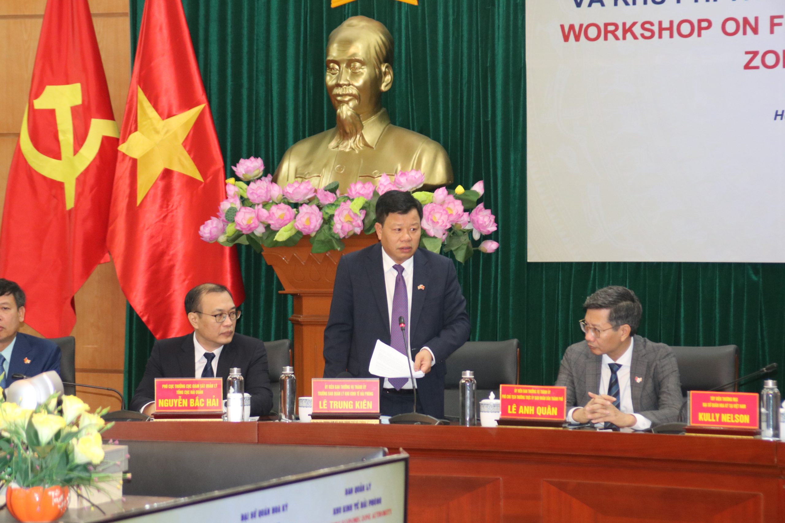 Đồng chí Lê Trung Kiên – Ủy viên Ban Thường vụ Thành ủy, Trưởng ban Ban quản lý Khu kinh tế Hải Phòng phát biểu tại Hội thảo