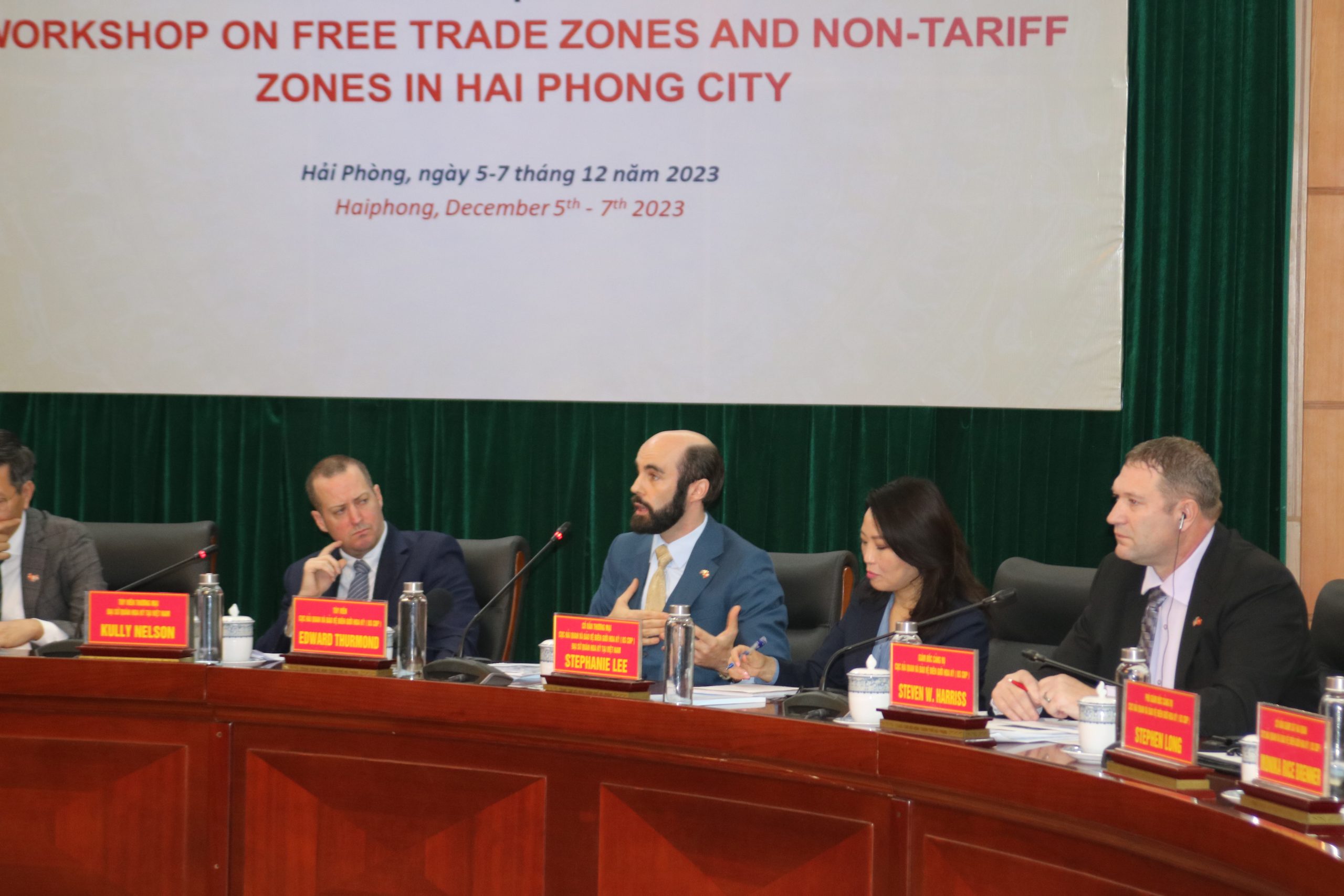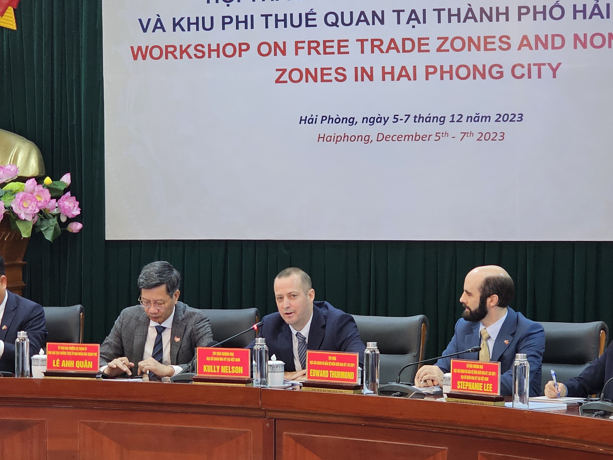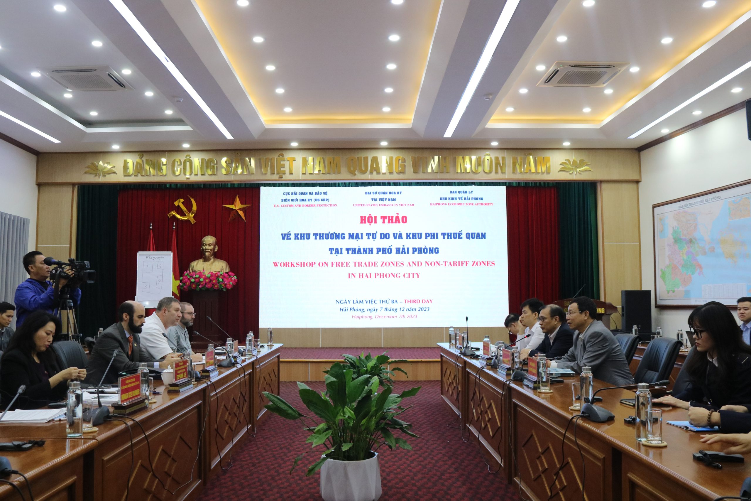 Trong ba ngày từ 05/12 đến 07/12/2023, Ban Quản lý Khu kinh tế Hải Phòng phối hợp với Cơ quan Hải quan và Bảo vệ Biên giới Hoa Kỳ (US CBP) tổ chức Hội thảo “Về Khu thương mại tự do và khu phi thuế quan tại Hải Phòng” với mục tiêu đẩy nhanh tiến độ thành lập Khu kinh tế phía Nam Hải Phòng trong đó có thành lập Khu thương mại tự do và triển khai, hoạch định cơ chế chính sách tại Khu phi thuế quan Xuân Cầu.