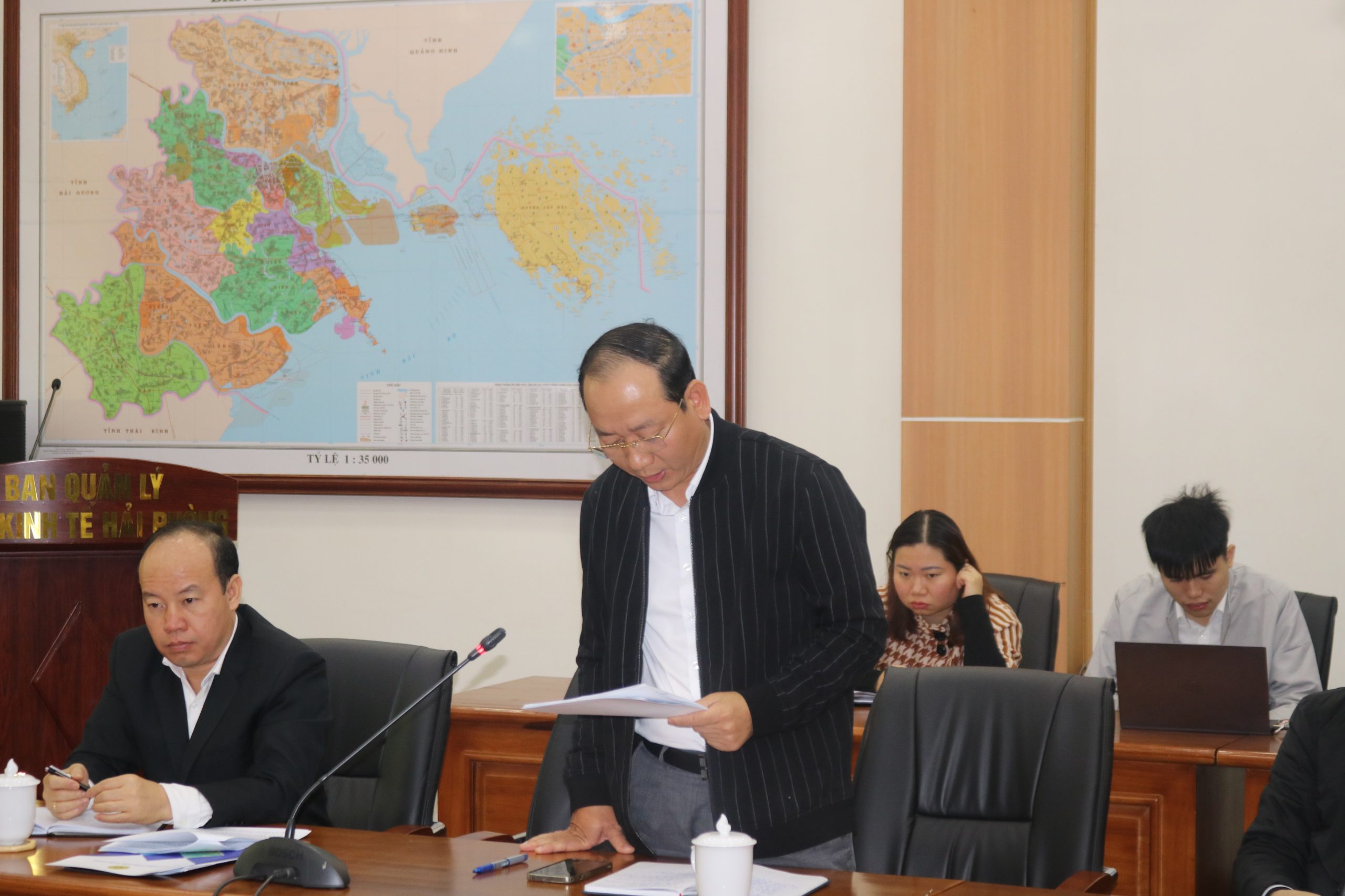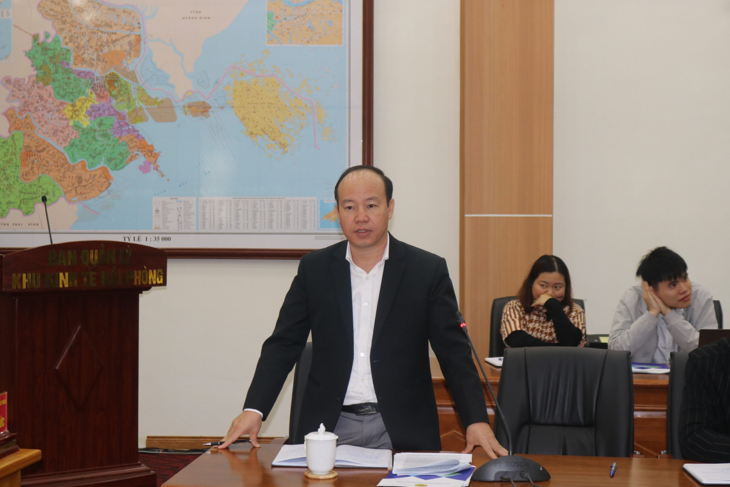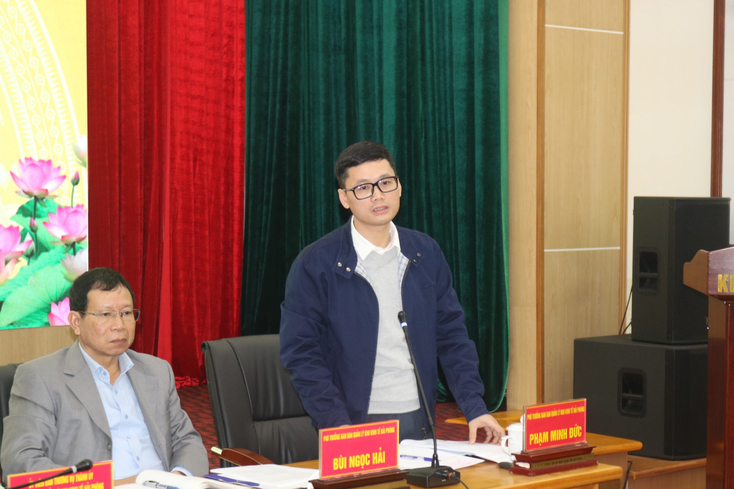 Đồng chí Lê Trung Kiên – Uỷ viên Ban Thường vụ Thành uỷ, Trưởng Ban Quản lý Khu Kinh tế Hải Phòng phát biểu tại hội nghị