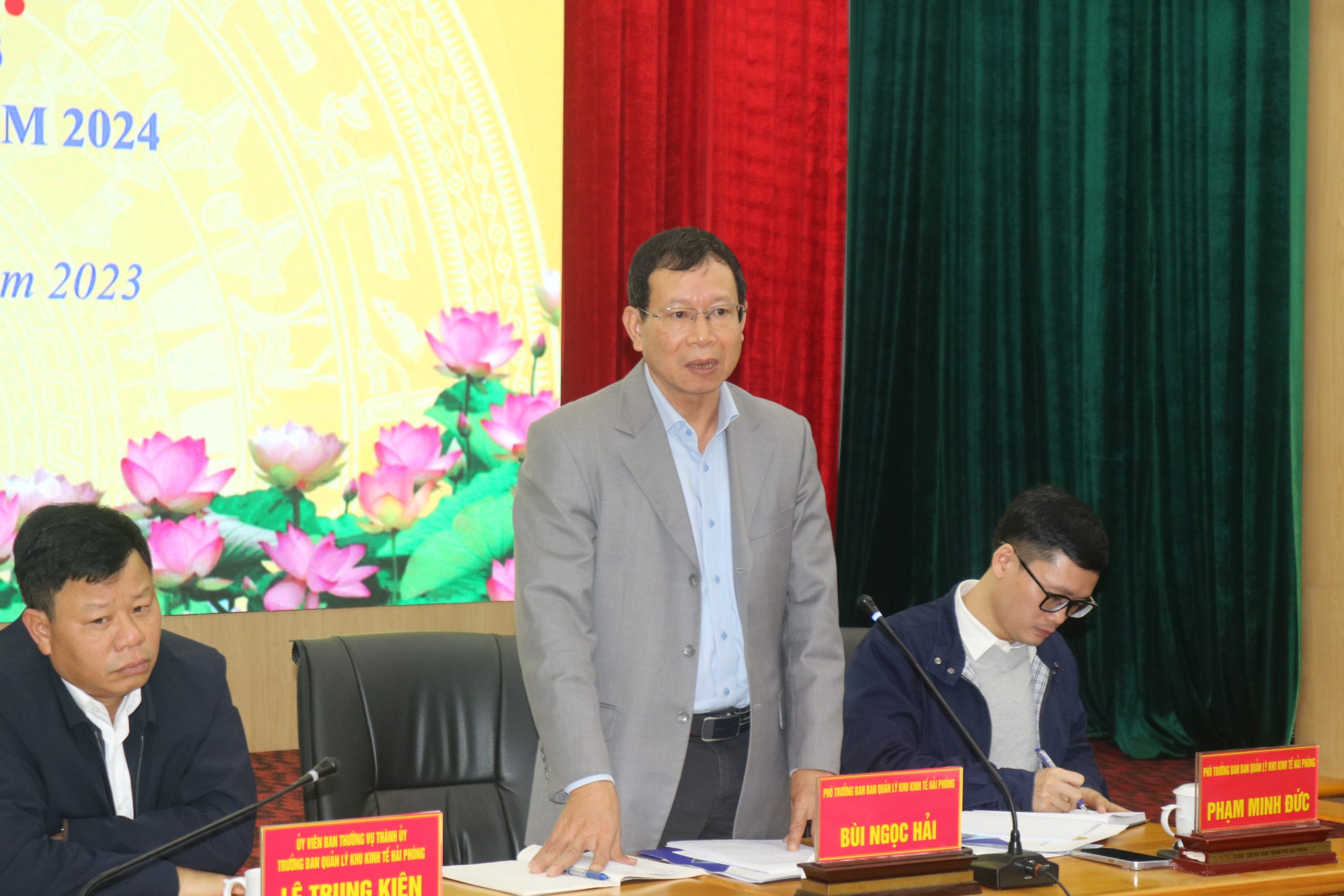 Phát biểu tại Hội nghị, đồng chí Lê Trung Kiên – Uỷ viên Ban Thường vụ Thành uỷ, Trưởng Ban Quản lý Khu Kinh tế Hải Phòng ghi nhận những cố gắng, nỗ lực của cán bộ, công chức của Ban trong thực hiện nhiệm vụ được giao trong năm 2023. Về nhiệm vụ năm 2024, đồng chí Lê Trung Kiên nêu rõ đây là năm thứ ba thực hiện Kế hoạch phát triển kinh tế – xã hội 5 năm 2021-2025, thực hiện Nghị quyết Đại hội Đảng bộ các cấp…; có ý nghĩa quan trọng trong việc phát triển kinh tế – xã hội, tạo tiền đề cho tăng trưởng bền vững cho cả giai đoạn 2021-2025. Do đó, đồng chí Trưởng Ban Quản lý Khu Kinh tế Hải Phòng yêu cầu các phòng chuyên môn, đơn vị sự nghiệp trực thuộc xác định rõ nhiệm vụ, xây dựng kế hoạch triển khai thực hiện; tăng cường trách nhiệm của các cán bộ, công chức, viên chức trong thực hiện nhiệm vụ; đồng thời khẩn trương khắc phục các tồn tại, hạn chế đã chỉ ra trong báo cáo, tiếp tục đổi mới phương thức hoạt động, nâng cao chất lượng công tác trong thời gian tới.