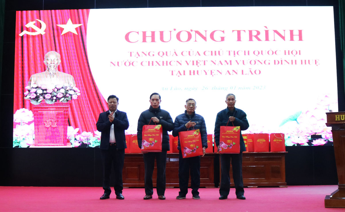 Trao quà của Chủ tịch Quốc hội Vương Đình Huệ tặng các hộ có hoàn cảnh khó khăn, gia đình chính sách trên địa bàn huyện An Lão