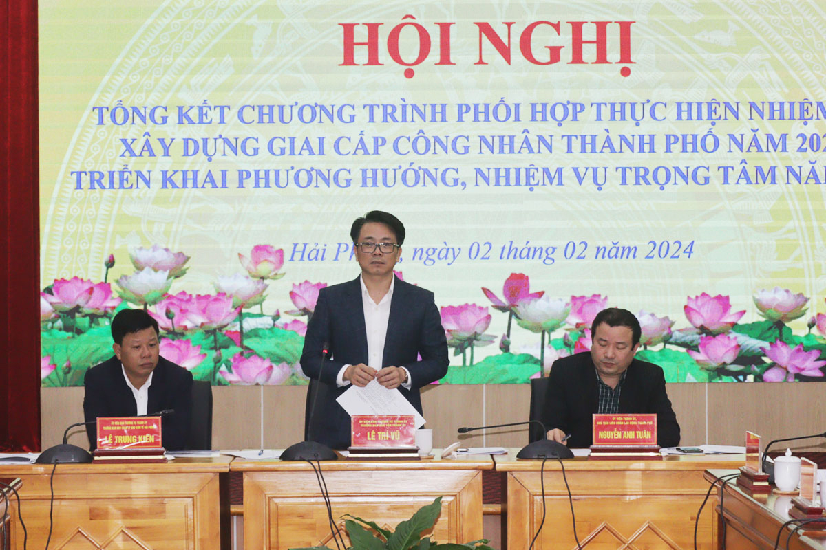 Sáng 2/2, Ban Quản lý Khu kinh tế Hải Phòng, Ban Dân vận Thành ủy,Liên đoàn Lao động thành phố tổ chức Hội nghị tổng kết chương trình phối hợp thực hiện nhiệm vụ xây dựng giai cấp công nhân Hải Phòng trong Khu công nghiệp, Khu kinh tế năm 2023; phương hướng, nhiệm vụ trọng tâm năm 2024.