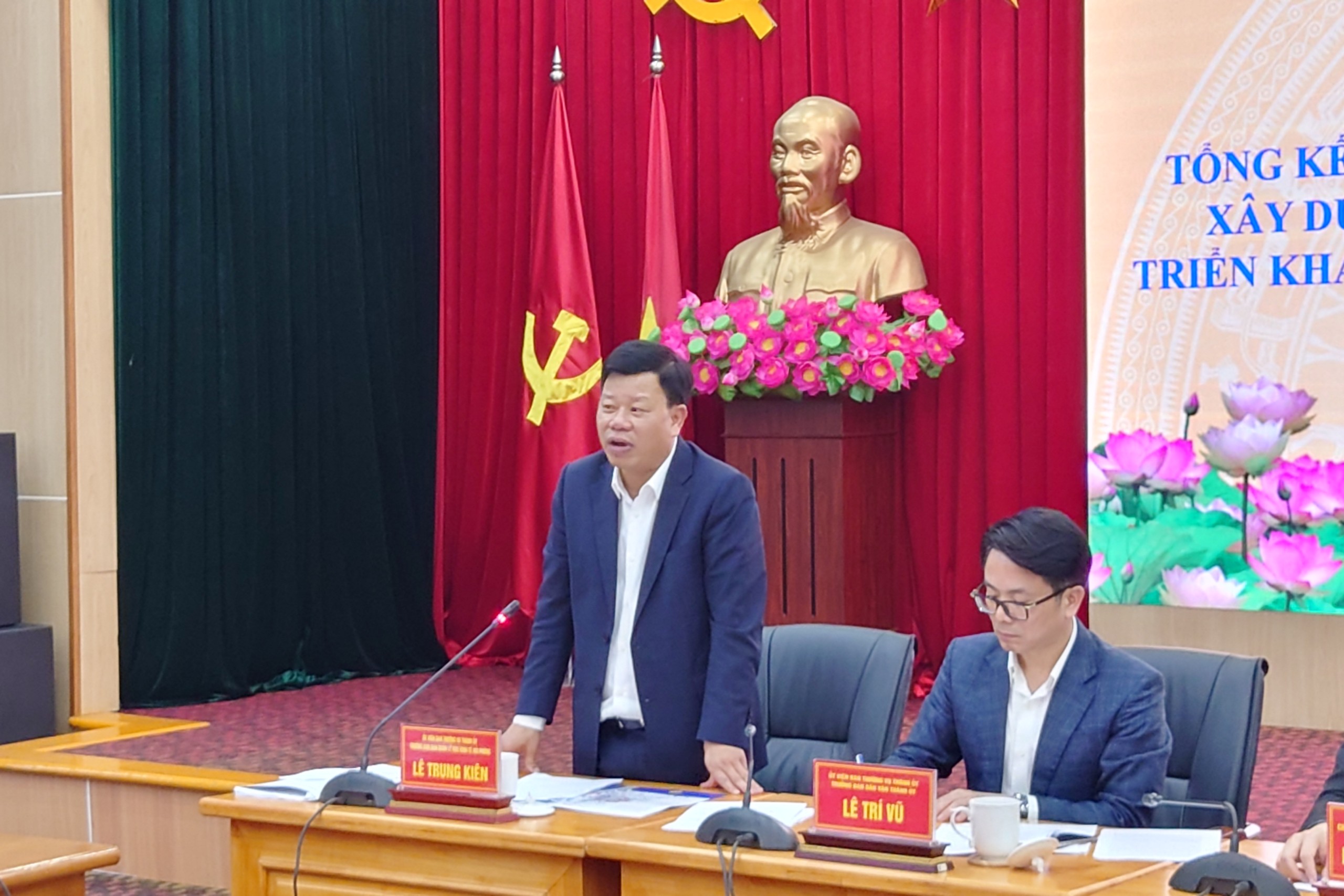 Đồng chí Lê Trí Vũ, Trưởng Ban Dân vận Thành ủy phát biểu tại Hội nghị.