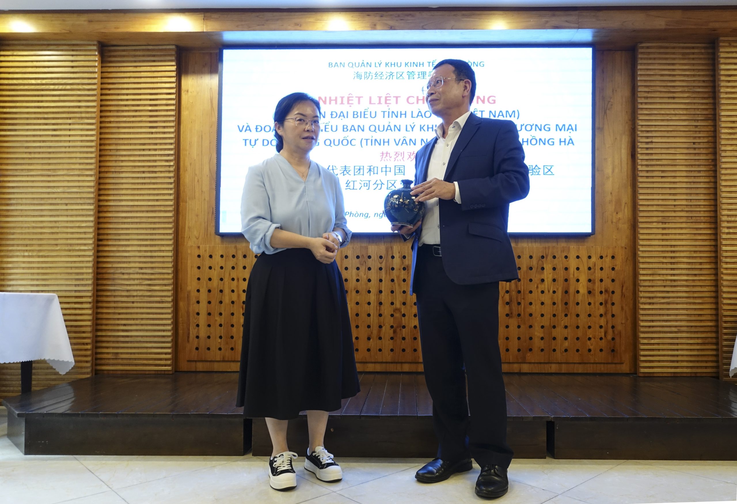 Ông Bùi Ngọc Hải và đại diện lãnh đạo tỉnh Vân Nam Trung Quốc trao nhau quà lưu niệm