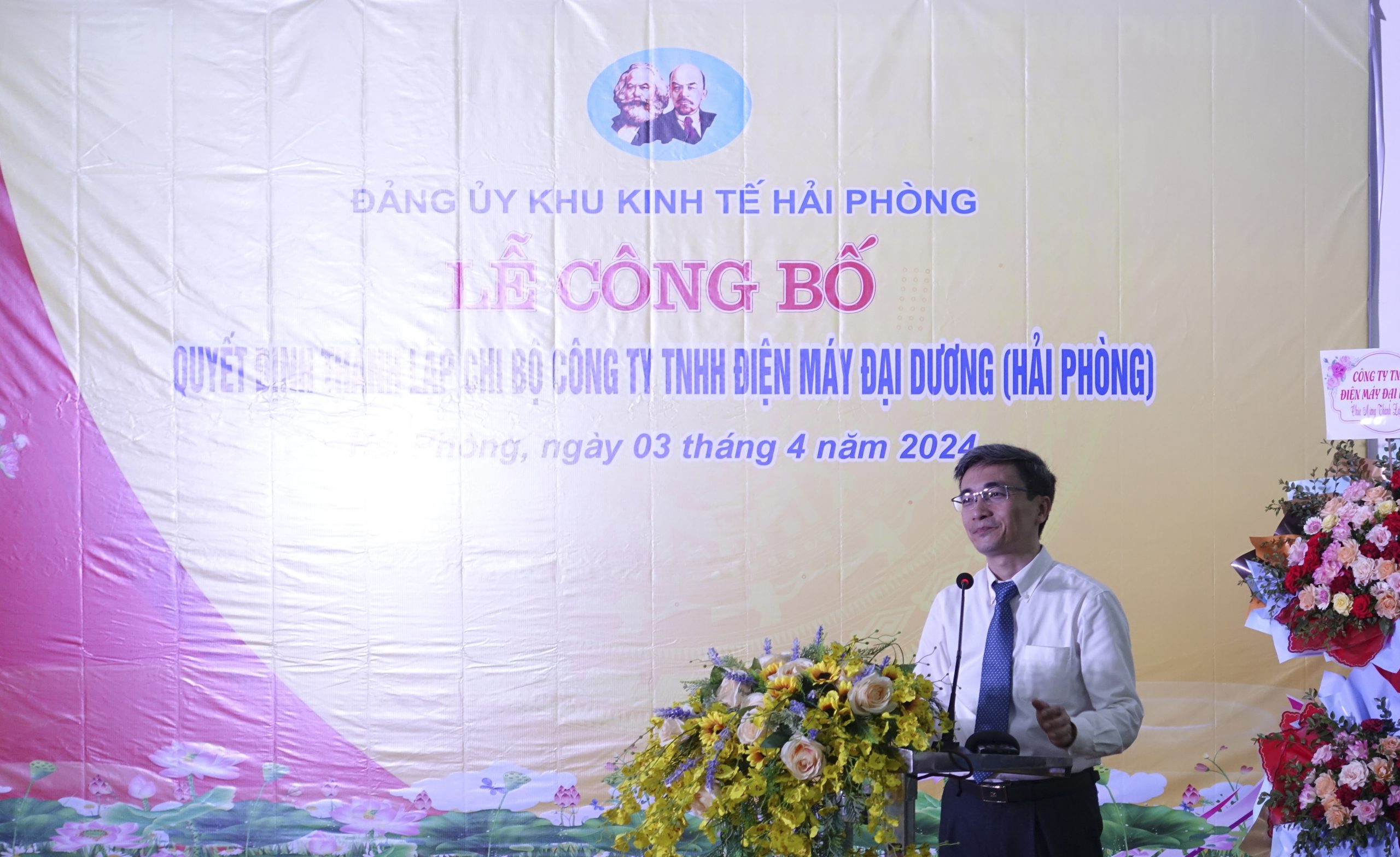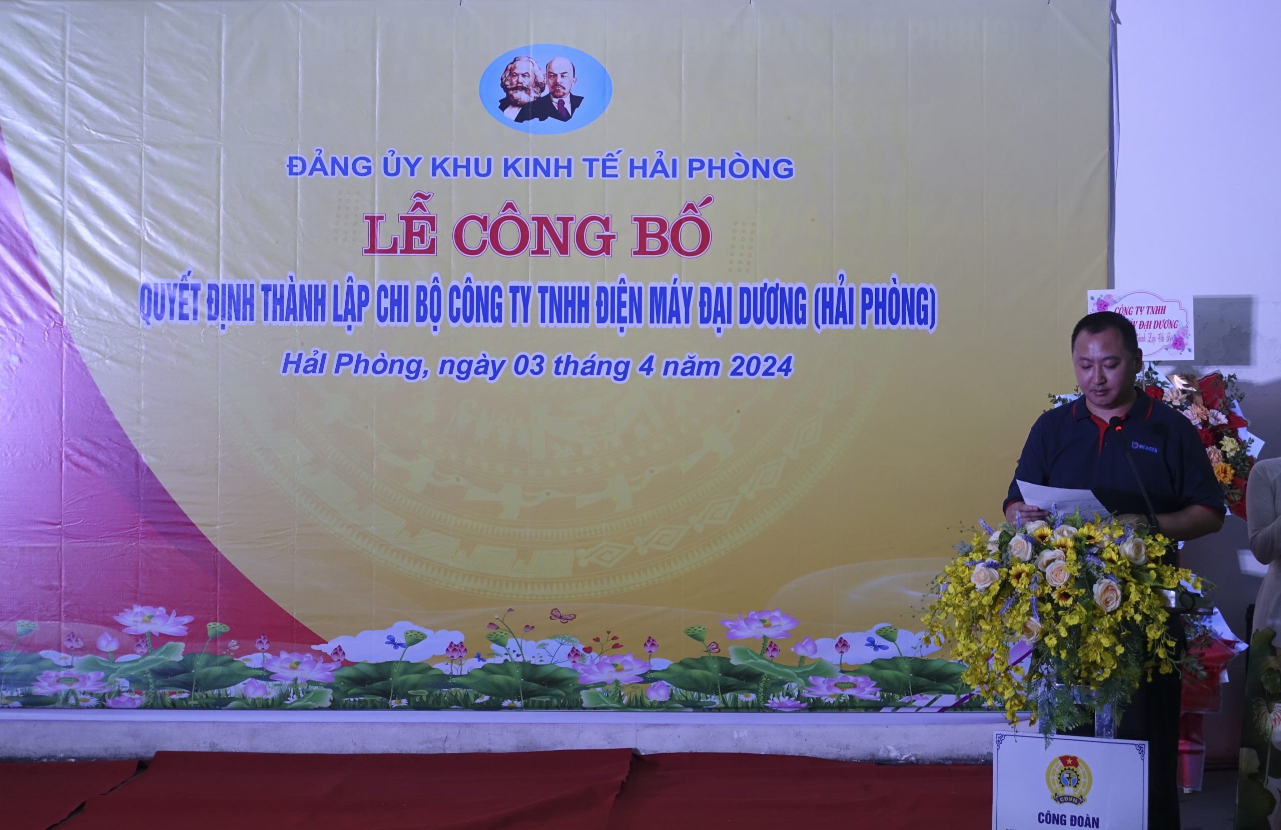 Ngày 3/4/2024 tại Công ty Công ty TNITH Điện máy Đại Dương, Đảng ủy Khu kinh tế Hải Phòng tổ chức Lễ công bố quyết định thành lập Chi bộ Công ty TNITH Điện máy Đại Dương.
