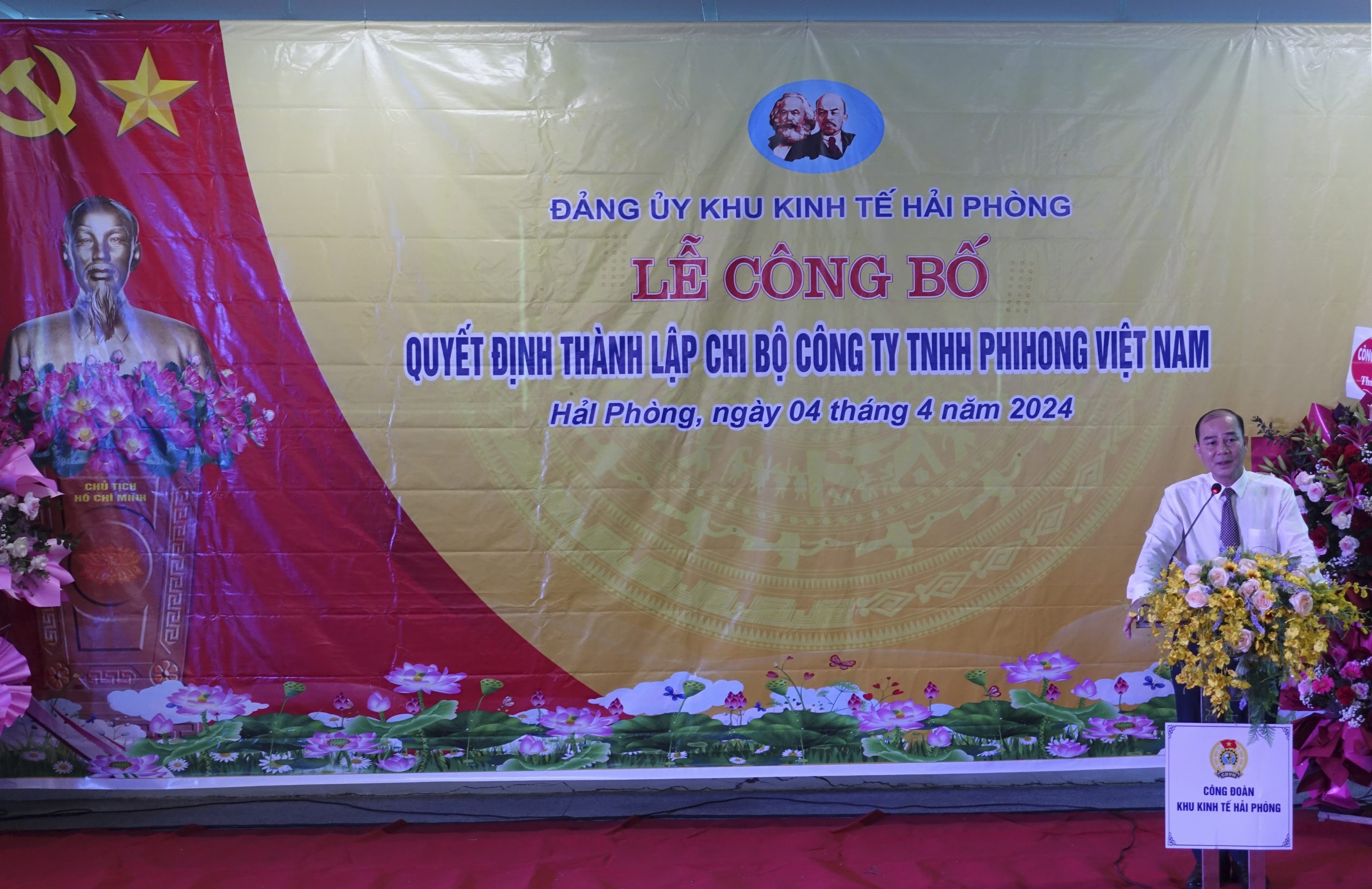 Đảng ủy Khu kinh tế Hải Phòng tổ chức Lễ công bố quyết định thành lập Chi bộ Công ty TNHH PhiHong Việt Nam.
