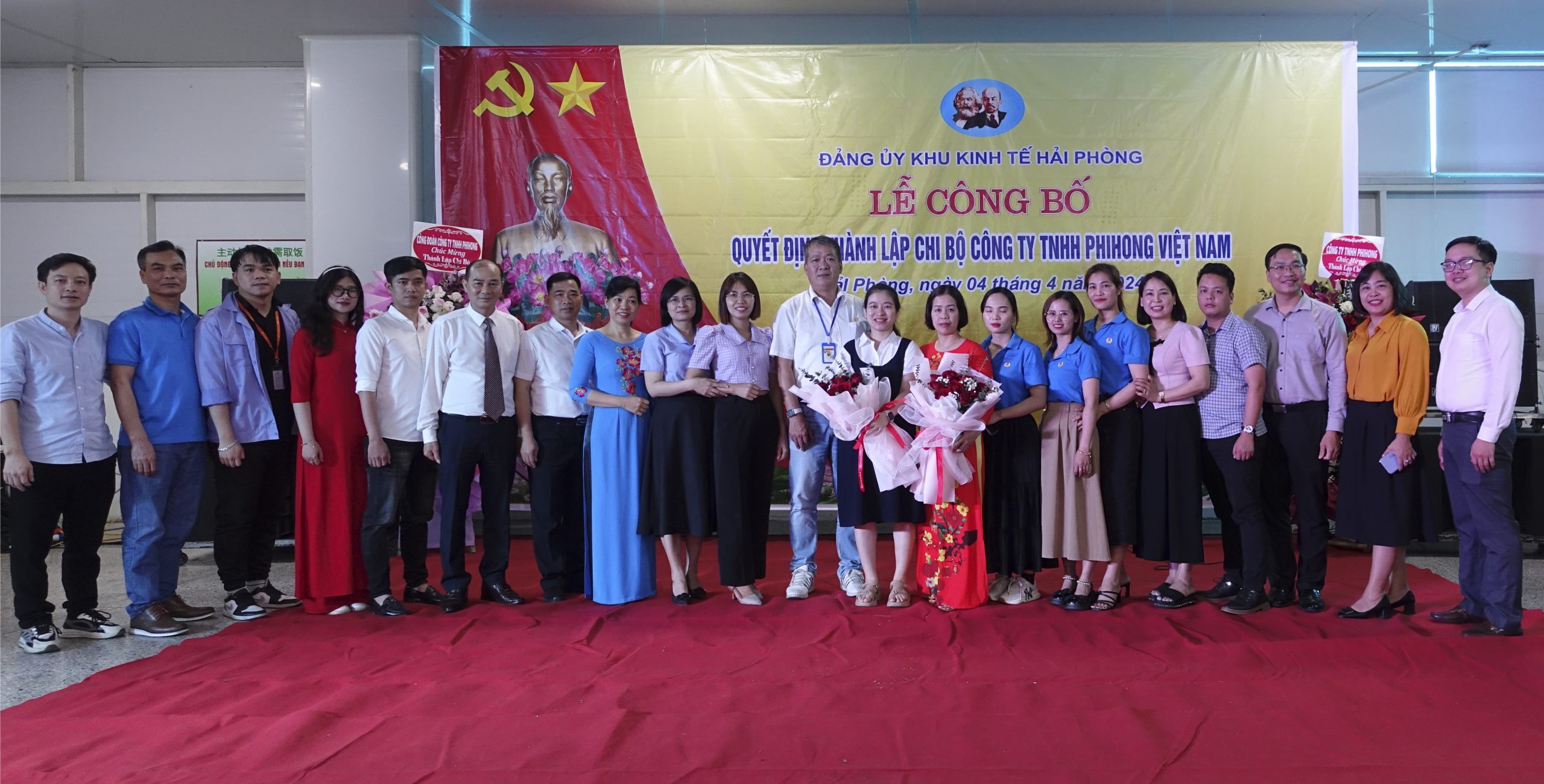 Ngày 4/4/2024 tại Công ty TNHH PhiHong Việt Nam, Đảng ủy Khu kinh tế Hải Phòng tổ chức Lễ công bố quyết định thành lập Chi bộ Công ty TNHH PhiHong Việt Nam.