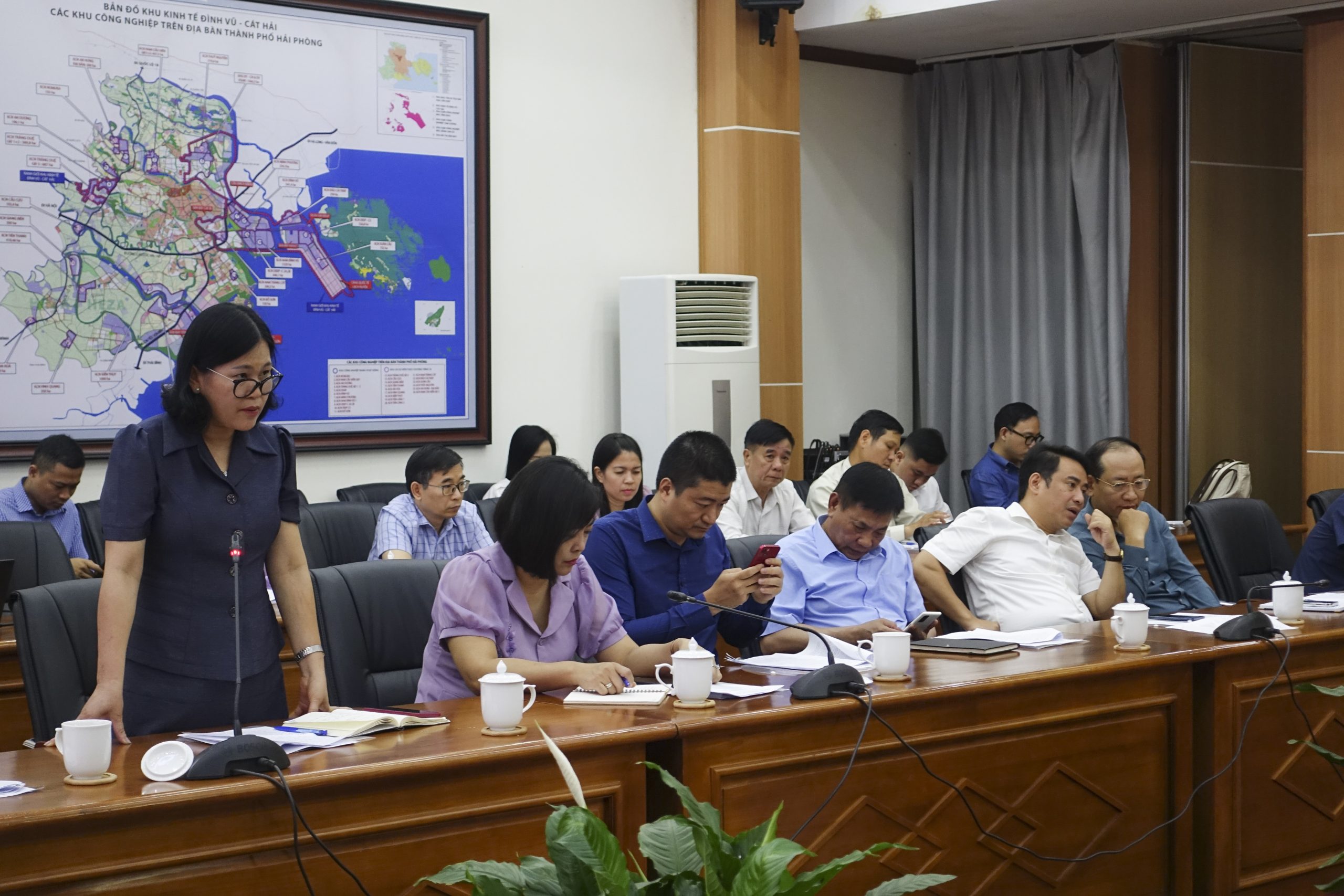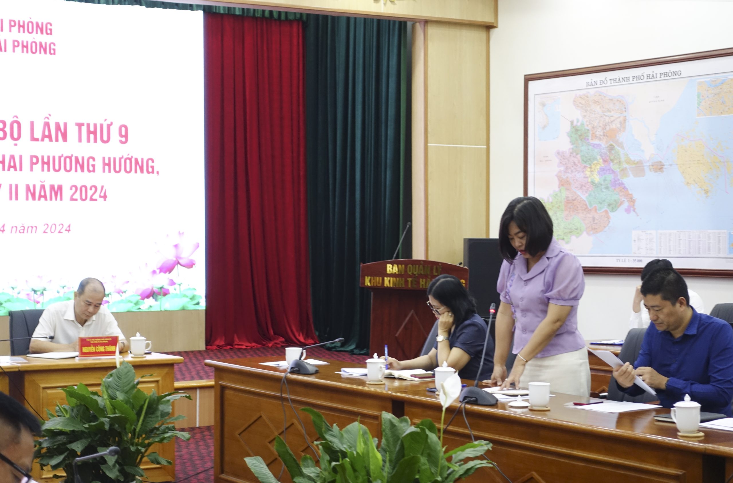 Đồng chí Đào Phú Thùy Dương, Ủy viên Thành ủy, Bí thư Đảng ủy Khu kinh tế Hải Phòng phát biểu tại Hội nghị.