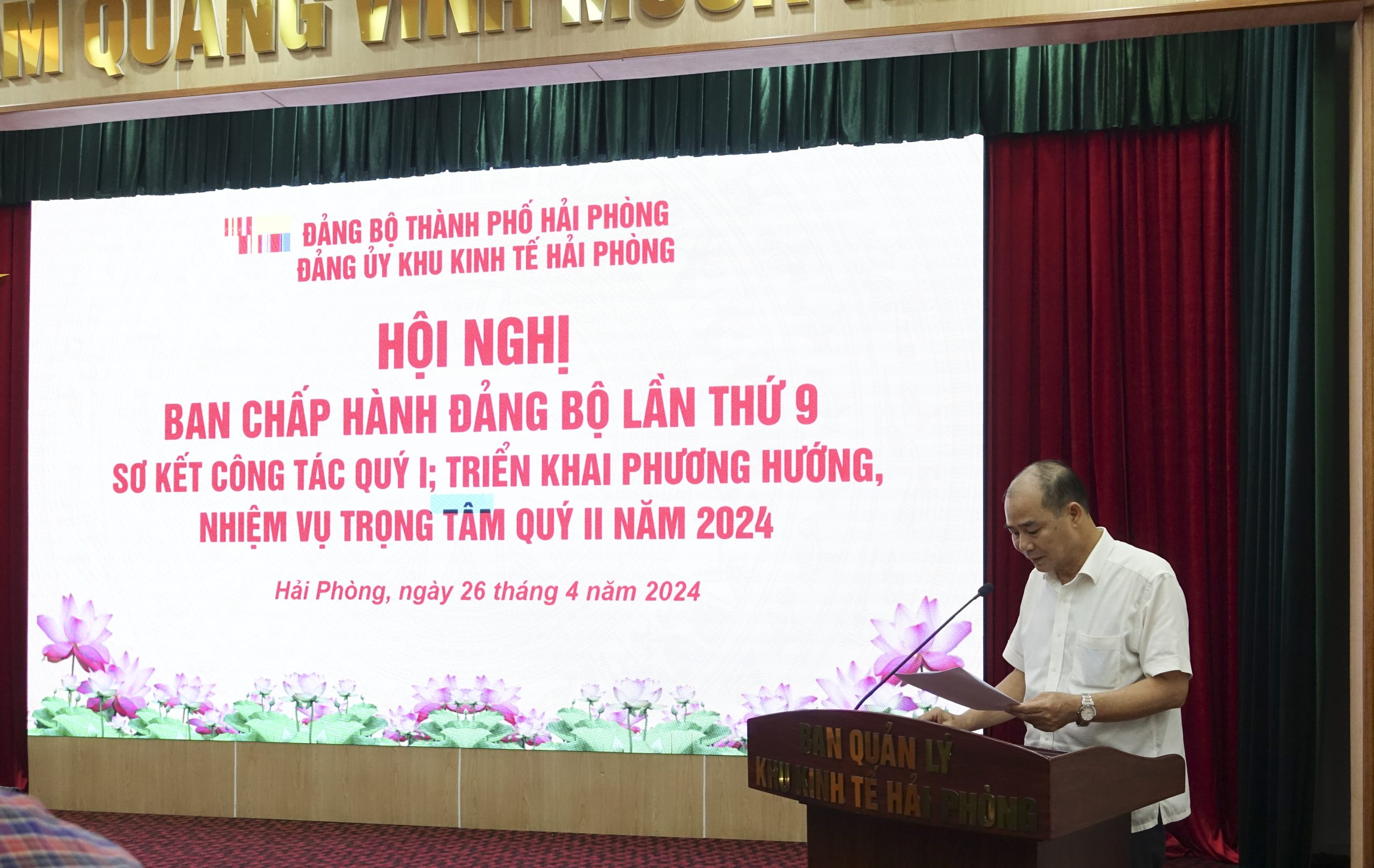 Trong quý I năm 2024, Đảng uỷ Khu kinh tế Hải Phòng đã tổ chức lớp Bồi dưỡng nhận thức về Đảng đợt 1 năm 2024 cho 180 quần chúng ưu tú. Đảng ủy đã ban hành Kế hoạch thực hiện Kết luận số 01-KL/TW ngày 18/5/2021 của Bộ Chính trị về tiếp tục thực hiện Chỉ thị số 05-CT/TW ngày 15/5/2016 của Bộ Chính trị khóa XII về đẩy mạnh học tập và làm theo tư tưởng, đạo đức, phong cách Hồ chí Minh” năm 2024 tại Đảng bộ Khu kinh tế Hải Phòng và đề nghị biểu dương khen thưởng cá nhân có thành tích được khen thưởng là đồng chí Bùi Ngọc Hải, Phó bí thư Đảng ủy, Bí thư Đảng ủy cơ quan Ban Quản lý Khu kinh tế Hải Phòng và đồng chí Nguyễn Hồng Quang, Bí thư chi bộ Công đoàn – Doanh nghiệp, Phó chủ tịch Công đoàn Khu kinh tế Hải Phòng.