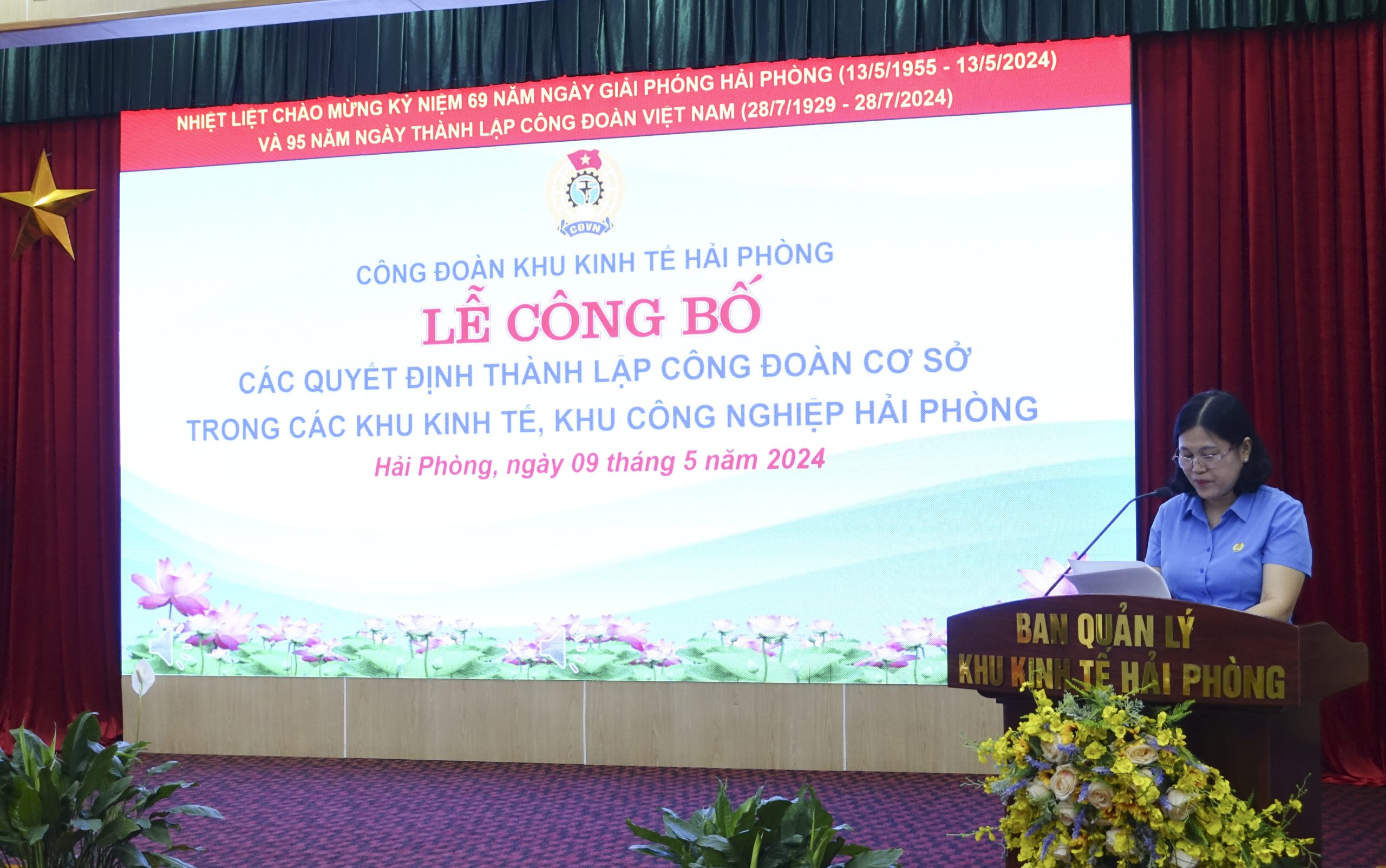 Trong thời gian tới, Ban Quản lý Khu kinh tế Hải Phòng, Công đoàn Khu kinh tế Hải Phòng tiếp tục rà soát các dự án đi vào sản xuất ổn định, khi đủ điều kiện sẽ tăng cường tuyên truyền, vận động thành lập các công đoàn cơ sở với mục tiêu đảm bảo quyền, lợi ích hợp pháp, chính đáng, nâng cao đời sống vật chất và tinh thần của người lao động, xây dựng quan hệ lao động hài hòa, ổn định, tiến bộ, thúc đẩy thực hiện các phong trào thi đua lao động, sáng tạo, nỗ lực hỗ trợ doanh nghiệp phát triển, góp phần xây dựng, phát triển kinh tế – xã hội thành phố.