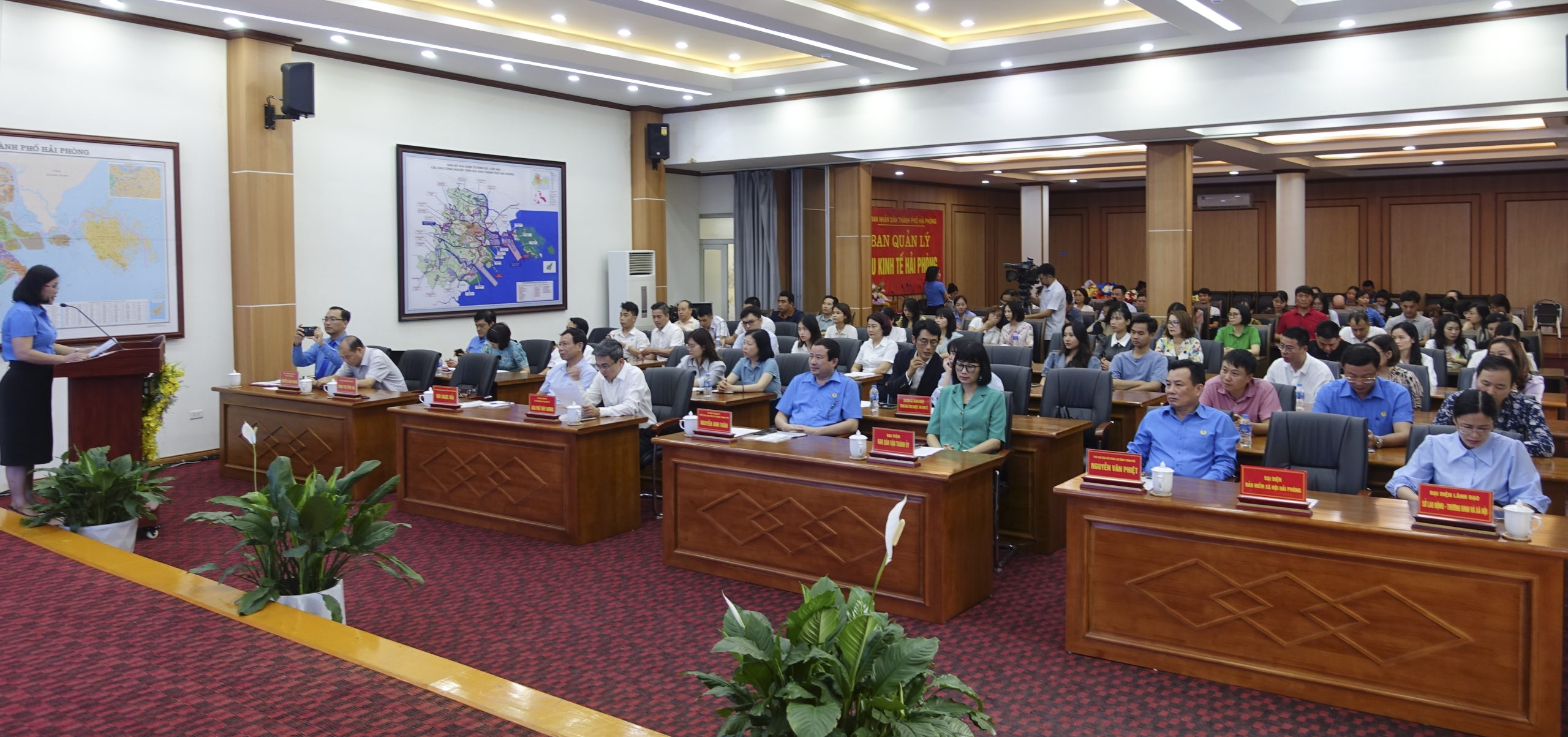 Hội nghị được tổ chức trang trọng với sự tham gia của đồng chí Nguyễn Anh Tuân – Ủy viên Đoàn Chủ tịch Tổng LĐLĐ Việt Nam, Ủy viên Thành ủy, Chủ tịch Liên đoàn lao động thành phố, đồng chí Đào Phú Thùy Dương, Ủy viên Thành ủy, Bí thư Đảng ủy Khu kinh tế Hải Phòng, đại diện các cơ quan, đơn vị có liên quan và đại diện lãnh đạo các doanh nghiệp trong các Khu công nghiệp, Khu kinh tế trên địa bàn thành phố.