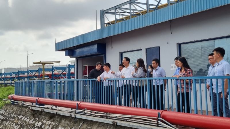 Đoàn khảo sát tại khu vực xử lý nước thải trong KCN