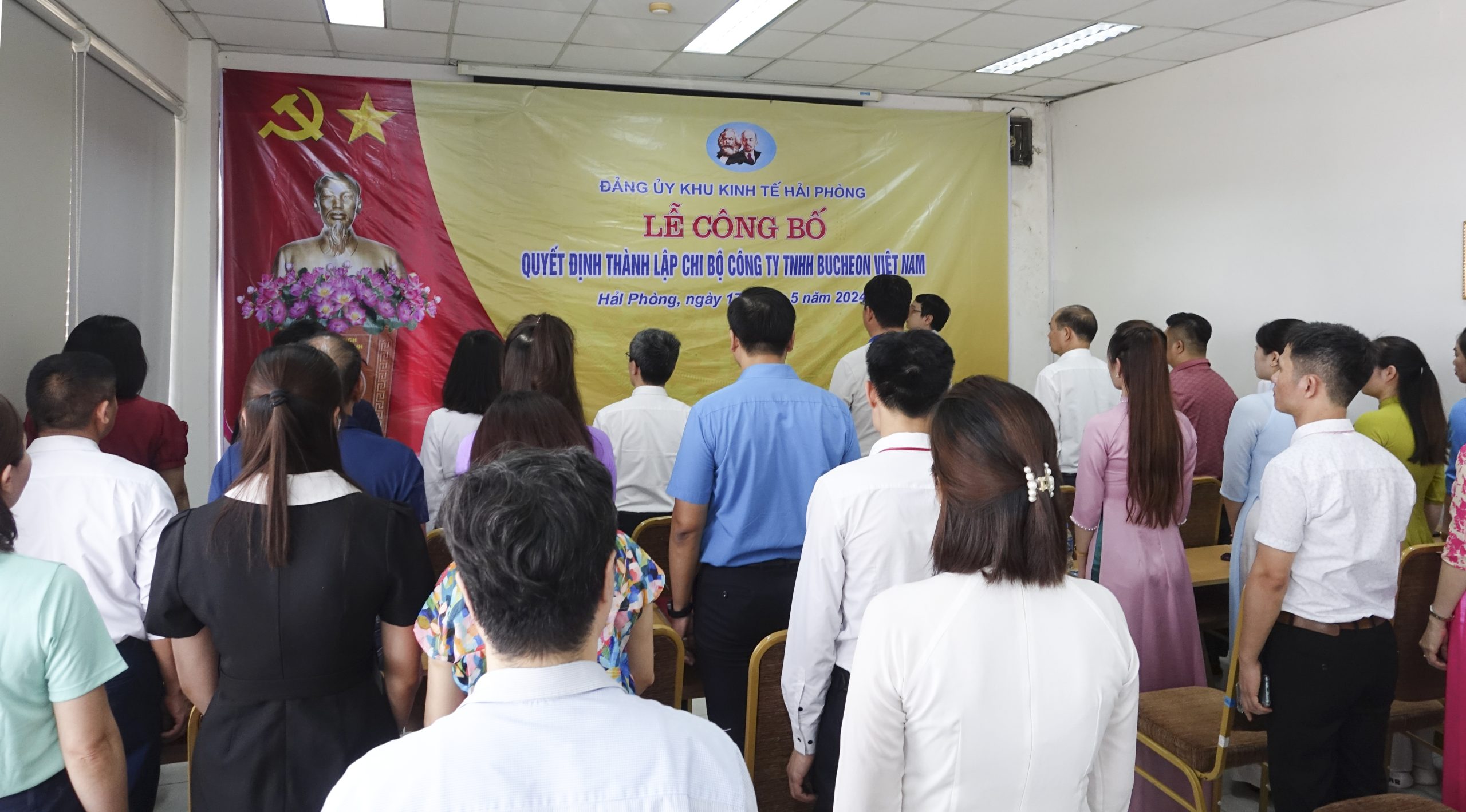 Đảng ủy Khu kinh tế Hải Phòng tổ chức Lễ công bố quyết định thành lập Chi bộ Công ty TNHH Bucheon Việt Nam.