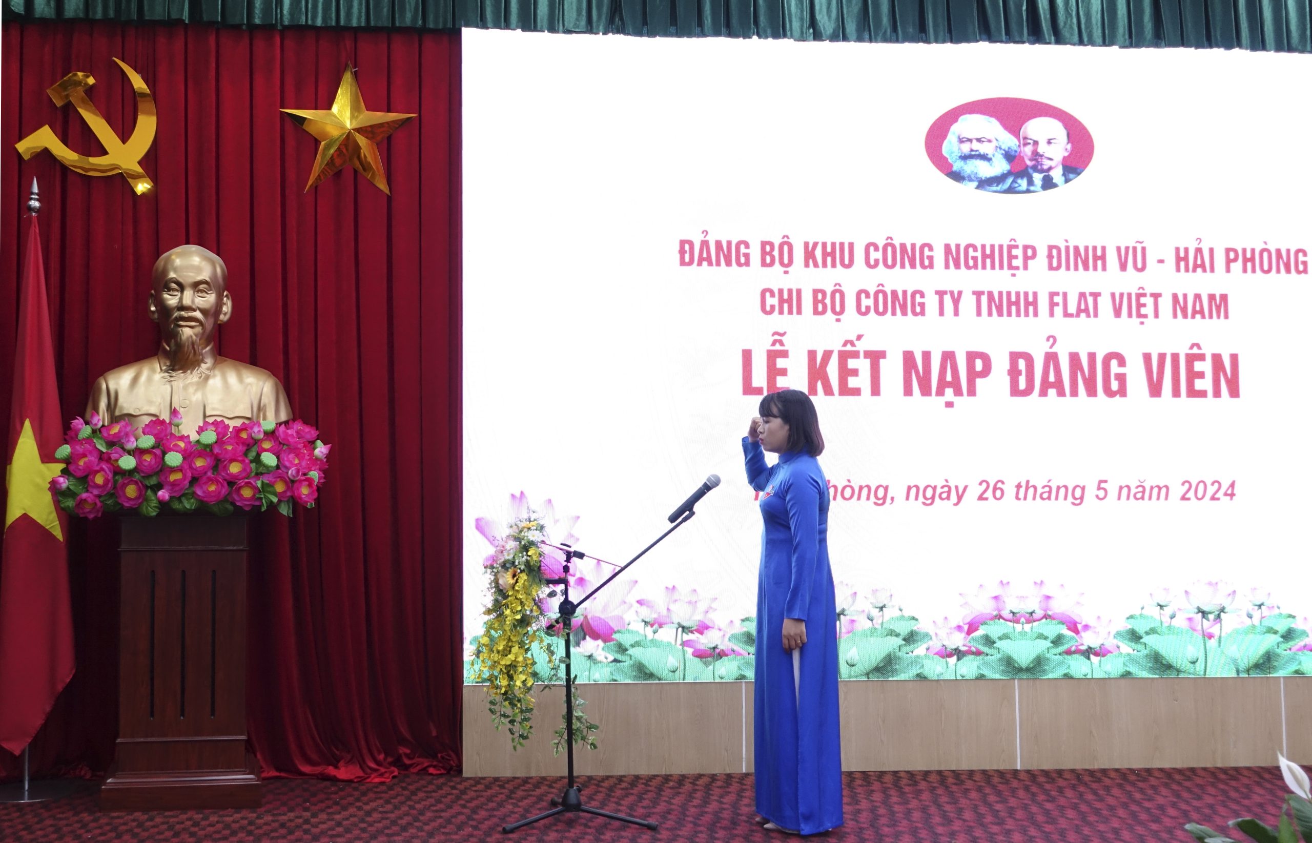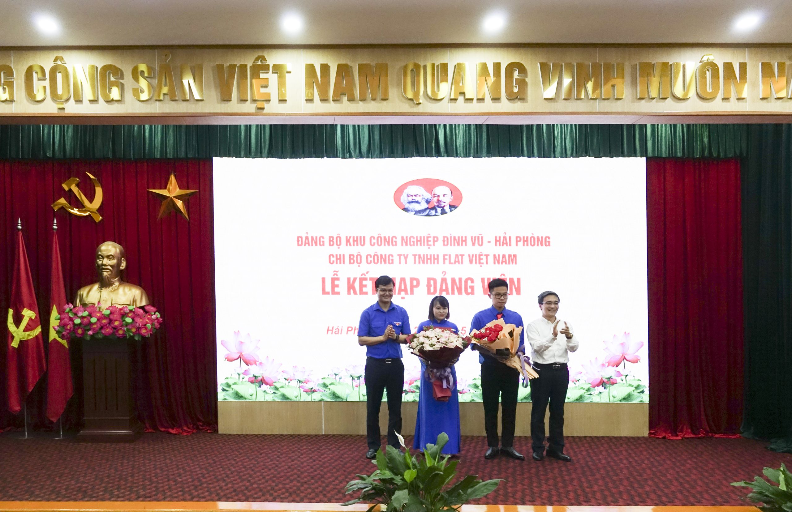 Tại chương trình, ban tổ chức đã công bố quyết định kết nạp đảng viên cho 2 quần chúng ưu tú công tác tại Công ty TNHH Flat Việt Nam gồm: đồng chí Lê Quang Hiếu (28 tuổi, quê quán TT. Minh Đức, H.Thủy Nguyên, TP. Hải Phòng) và đồng chí Phạm Thị Thành (35 tuổi, quê quán xã Quang Phục, H. Tiên Lãng, TP. Hải Phòng).