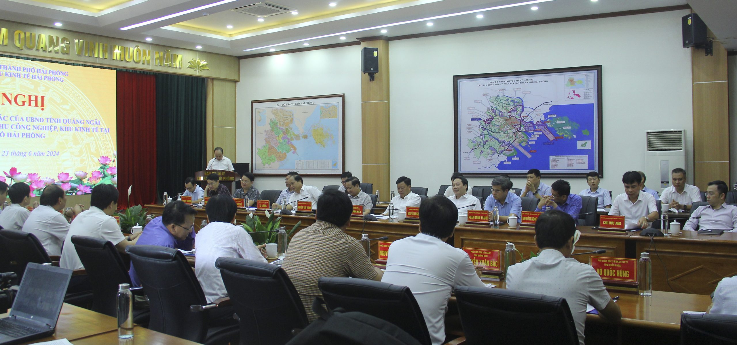 Tại cuộc làm việc, đại diện lãnh đạo Ban Quản lý Khu kinh tế Hải Phòng và các Sở, ngành thành phố trao đổi, làm rõ một số vấn đề mà Đoàn công tác của UBND tỉnh Quảng Ngãi quan tâm như: Cơ chế, chính sách đặc thù phát triển thành phố Hải Phòng theo Nghị quyết số 35/2021/QH15 ngày 13/11/2021 của Quốc hội; mô hình đầu tư, quản lý hạ tầng khu công nghiệp, khu kinh tế và các cơ chế, chính sách hỗ trợ đặc thù của Khu kinh tế Hải Phòng; quá trình thí điểm chuyển đổi khu công nghiệp truyền thống sang mô hình khu công nghiệp sinh thái, hướng tới mô hình kinh tế tuần hoàn tại Hải Phòng.