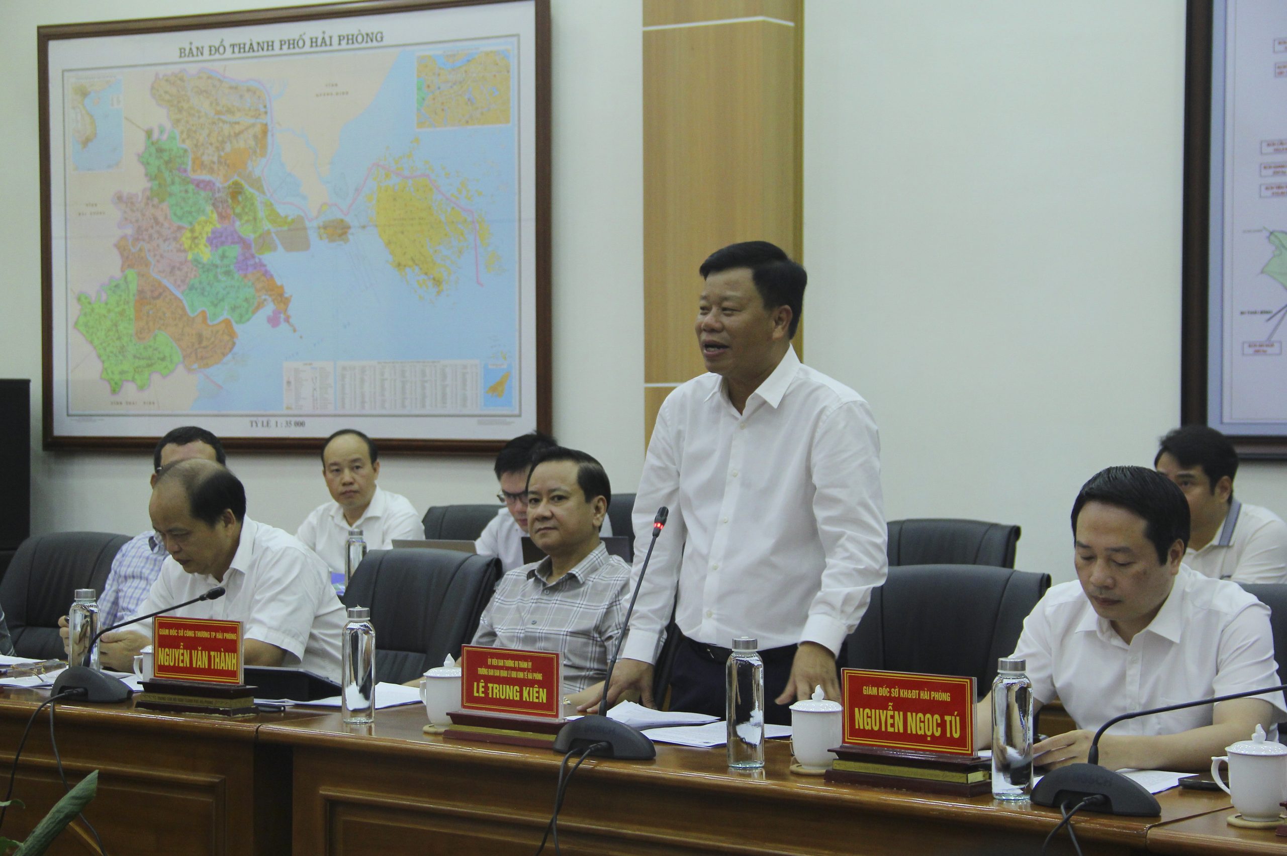 Đồng chí Lê Trung Kiên,Ủy viên Ban thường vụ Thành ủy, Trưởng ban Ban Quản lý Khu kinh tế Hải Phòng phát biểu tại buổi làm việc.