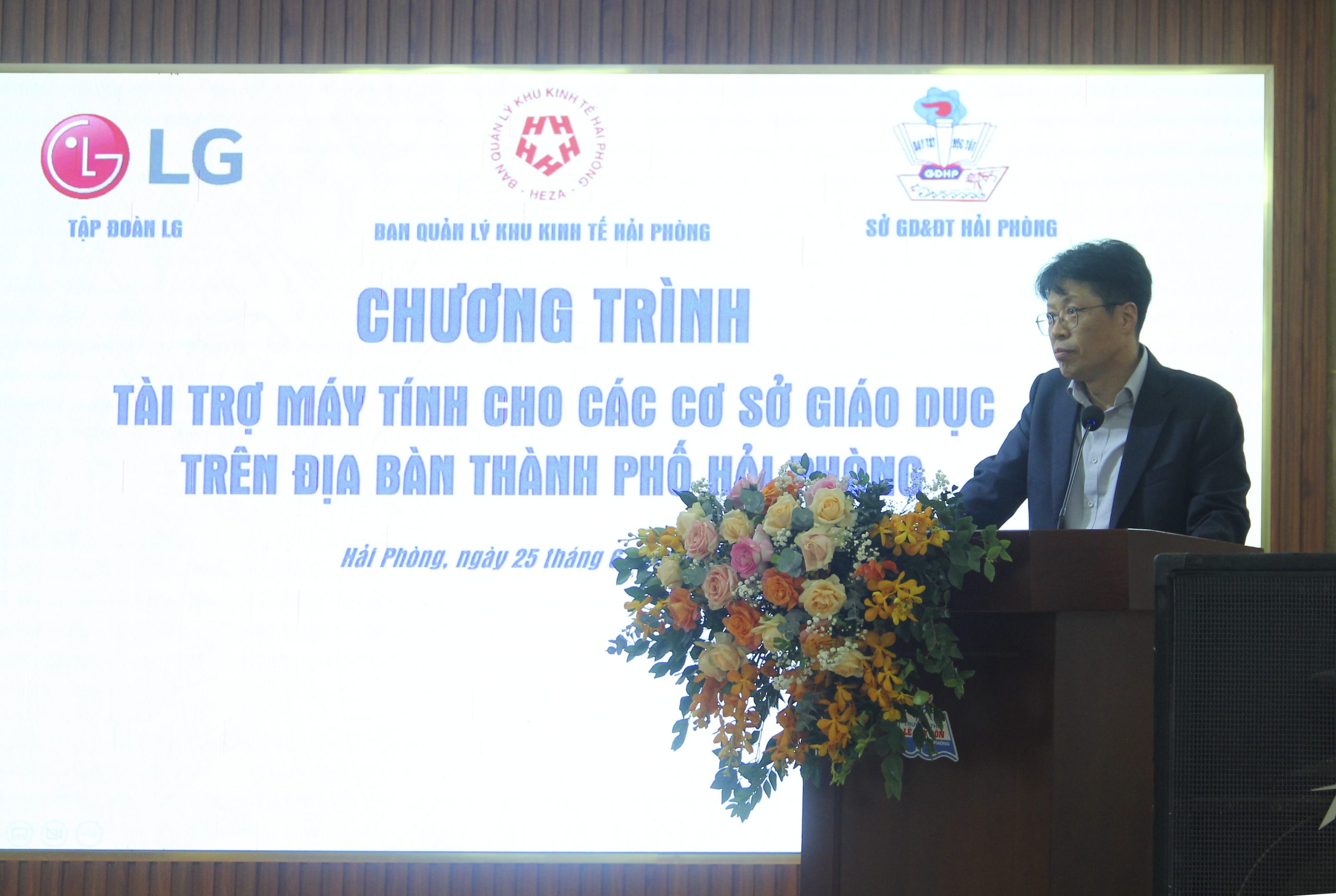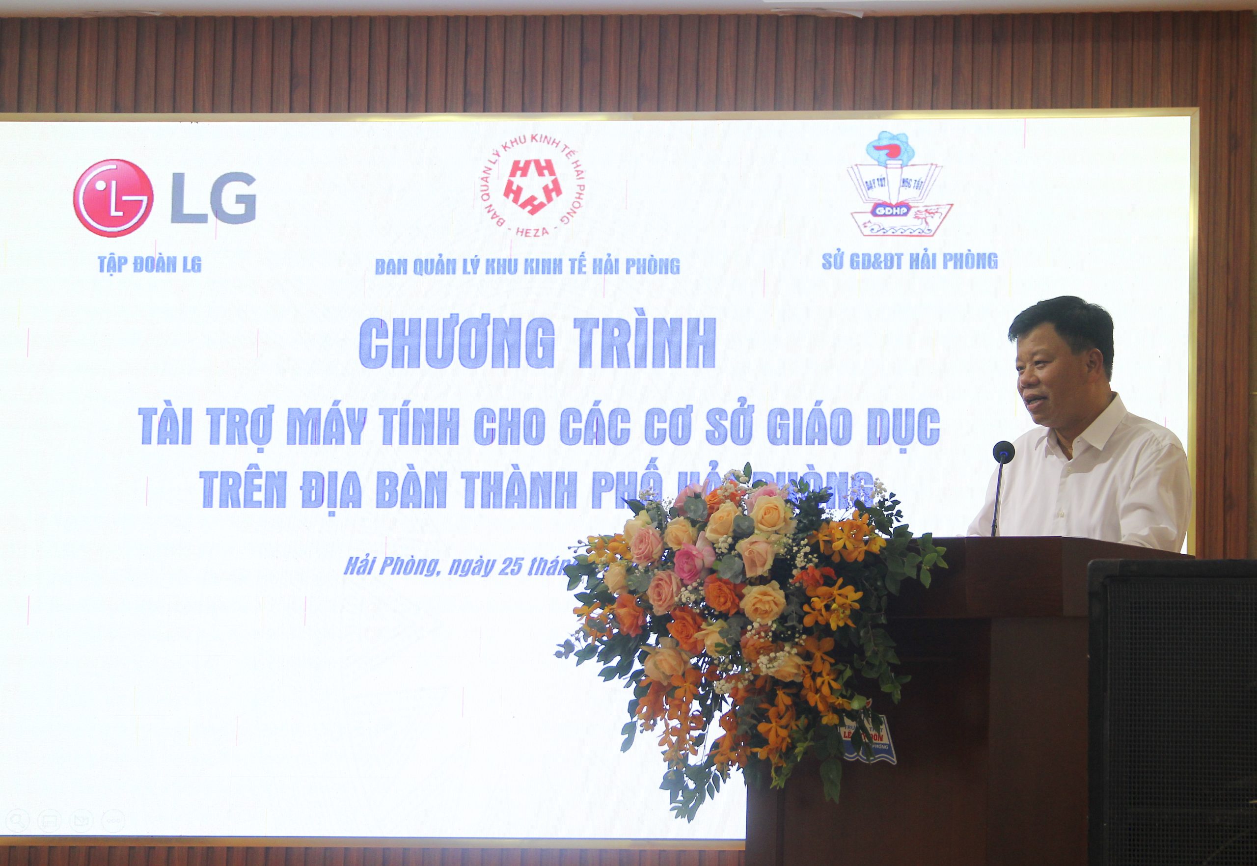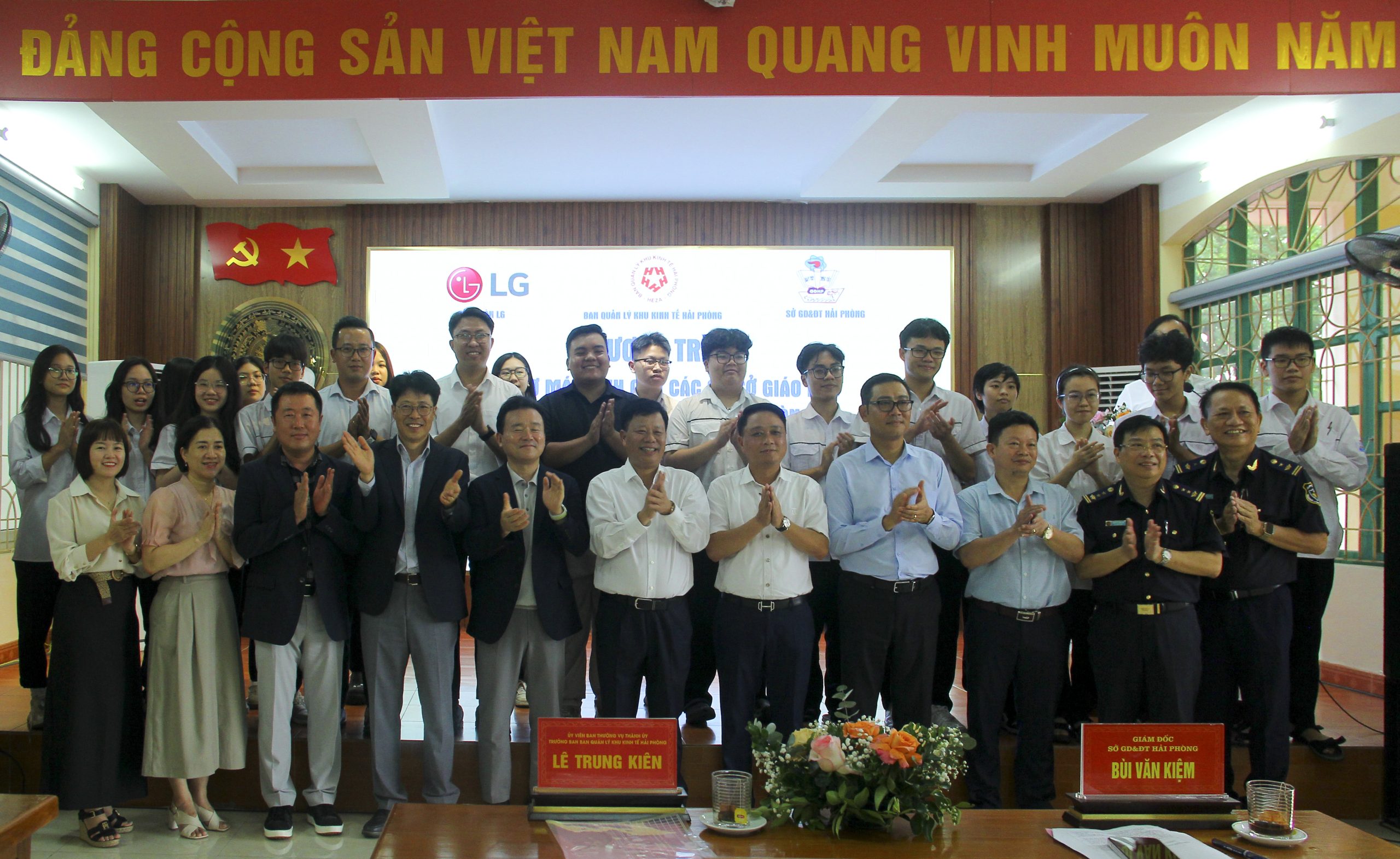 Phát biểu tại chương trình, Ủy viên ban Thường vụ Thành Ủy, Trưởng ban Ban Quản lý Khu kinh tế Hải Phòng ông Lê Trung Kiên trân trọng ghi nhận sự chung tay của Tập đoàn LG cùng với những nỗ lực của ngành Giáo dục thành phố Hải Phòng đã kịp thời, tạo điều kiện thuận lợi tốt nhất để trang bị máy tính cho thầy trò nhà trường góp phần nâng cao chất lượng giáo dục thành phố. Trưởng Ban Quản lý Khu kinh tế Hải Phòng mong muốn thời gian tới sẽ có nhiều hoạt động ý nghĩa từ các doanh nghiệp trong Khu kinh tế bao gồm các doanh nghiệp từ nhiều quốc gia khác nhau chung tay vì sự phát triển giáo dục của Hải Phòng.