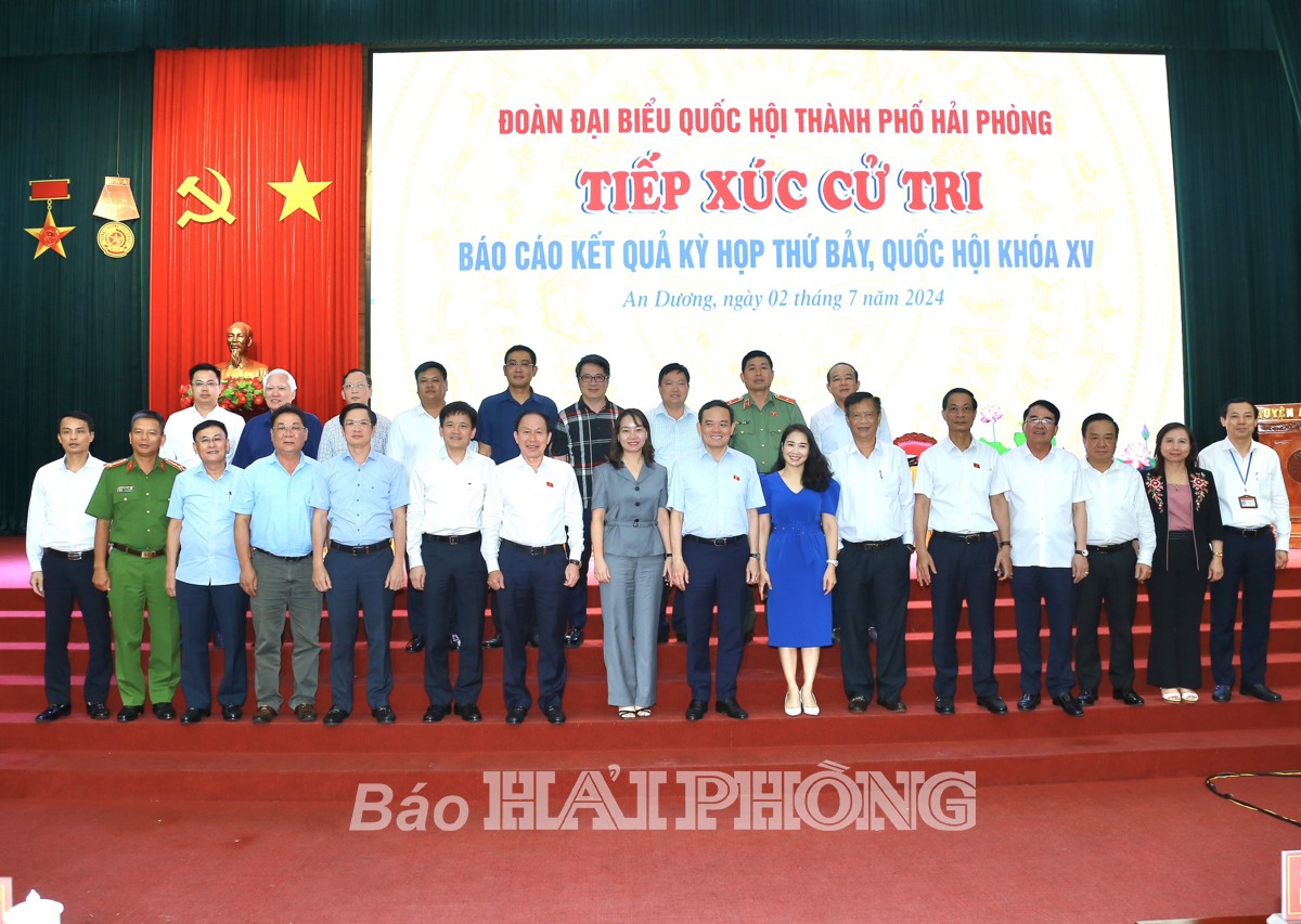 Sáng 2-7, các đồng chí: Trần Lưu Quang, Ủy viên Trung ương Đảng, Phó thủ tướng Chính phủ; Lê Tiến Châu, Ủy viên Trung ương Đảng, Bí thư Thành ủy, Trưởng Đoàn đại biểu Quốc hội thành phố Hải Phòng; Đỗ Mạnh Hiến, Phó bí thư Thường trực Thành ủy và đại biểu Quốc hội Hải Phòng tiếp xúc cử tri huyện An Dương, báo cáo kết quả kỳ họp thứ 7, Quốc hội khóa 15.