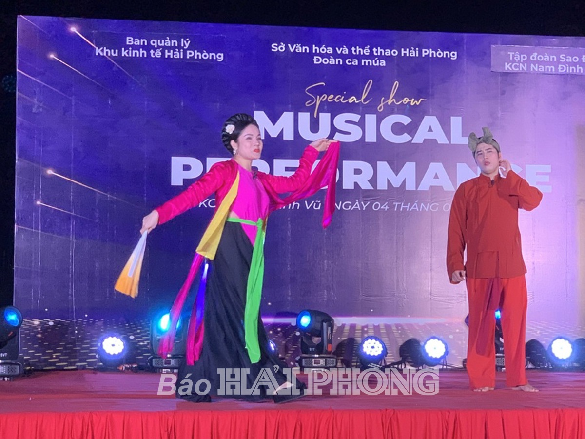 Tối 4-7, Sở Văn hóa và Thể thao phối hợp Ban Quản lý Khu Kinh tế thành phố, Tập đoàn Sao Đỏ tổ chức chương trình biểu diễn nghệ thuật phục vụ công nhân, lao động Khu công nghiệp Nam Đình Vũ. Đây là hoạt động thực hiện kế hoạch của Sở Văn hóa và Thể thao về việc phối hợp tổ chức các hoạt động văn hóa, nghệ thuật phục vụ đoàn viên, thanh niên, công nhân và người lao động năm 2024.