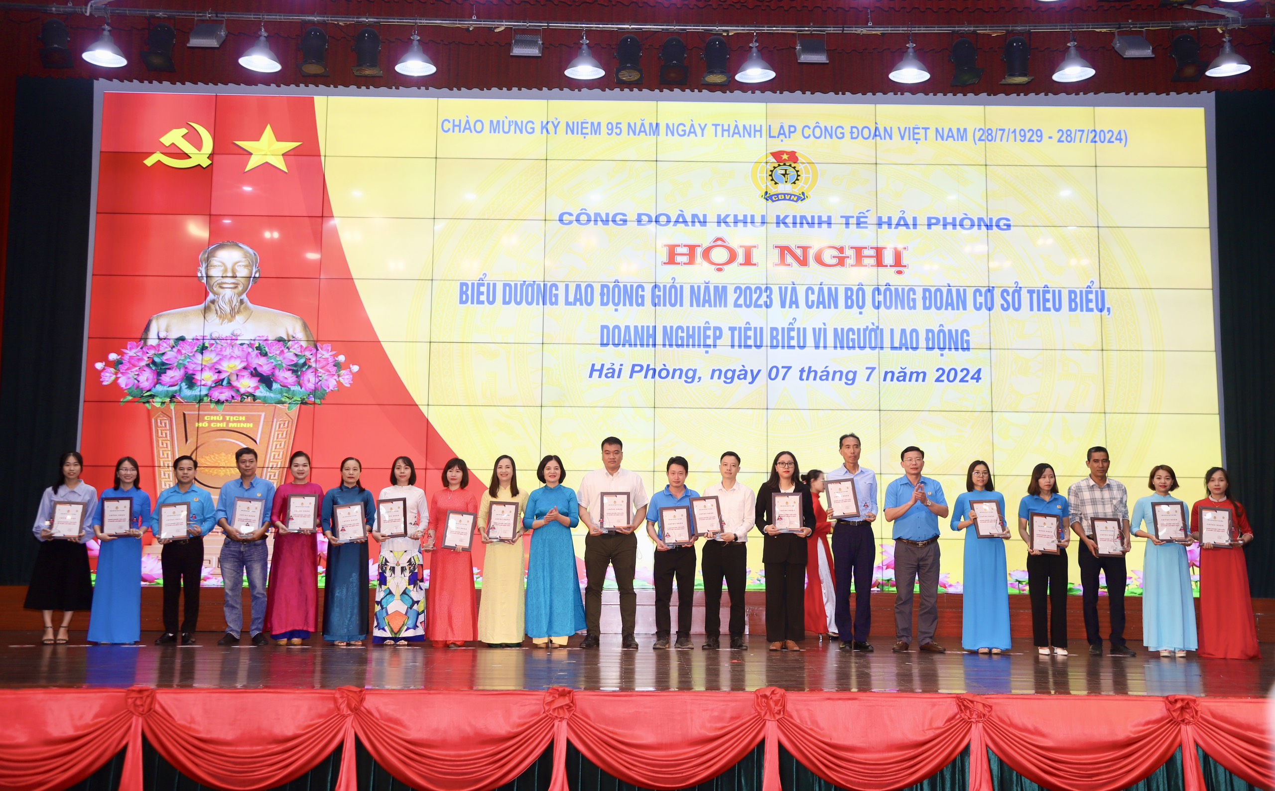 Sáng 7/7, Công đoàn Khu kinh tế Hải Phòng tổ chức Hội nghị biểu dương lao động giỏi năm 2023, cán bộ công đoàn cơ sở tiêu biểu, doanh nghiệp vì người lao động.