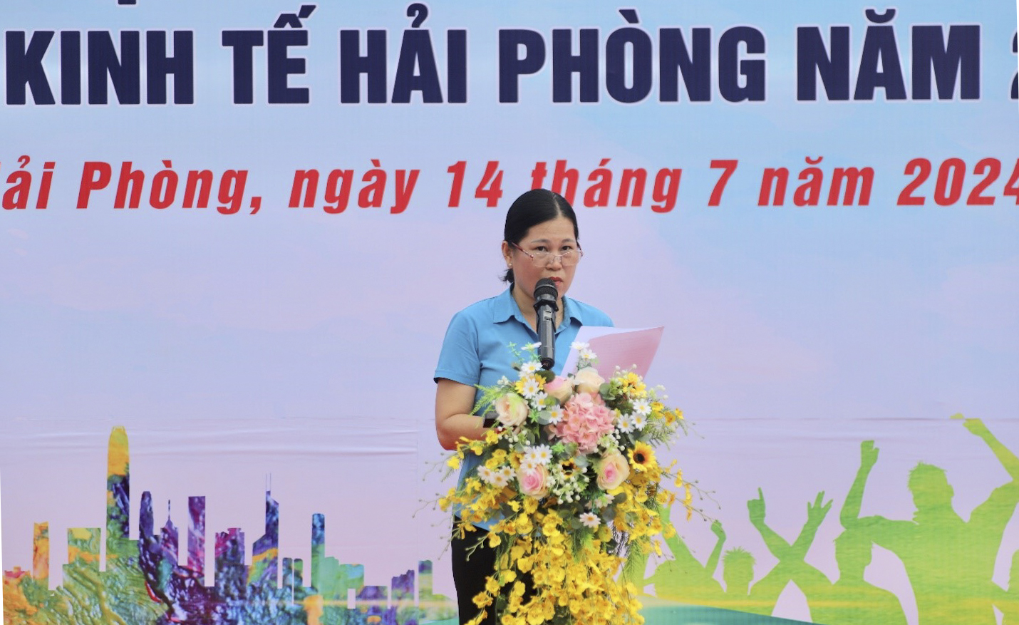 Đồng chí Đinh Thị Thúy Hà, Chủ tịch Công đoàn Khu kinh tế Hải Phòng phát biểu khai mạc tại Ngày Hội,