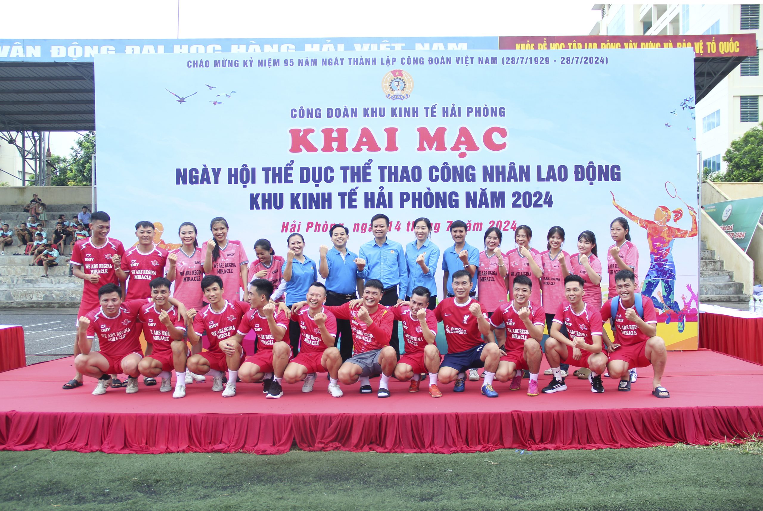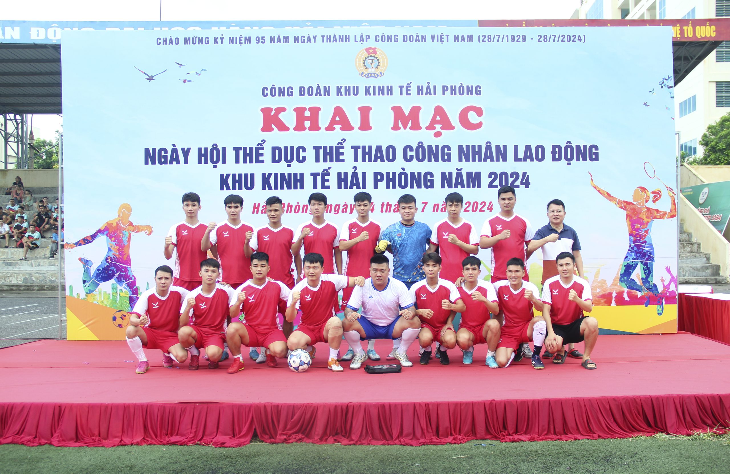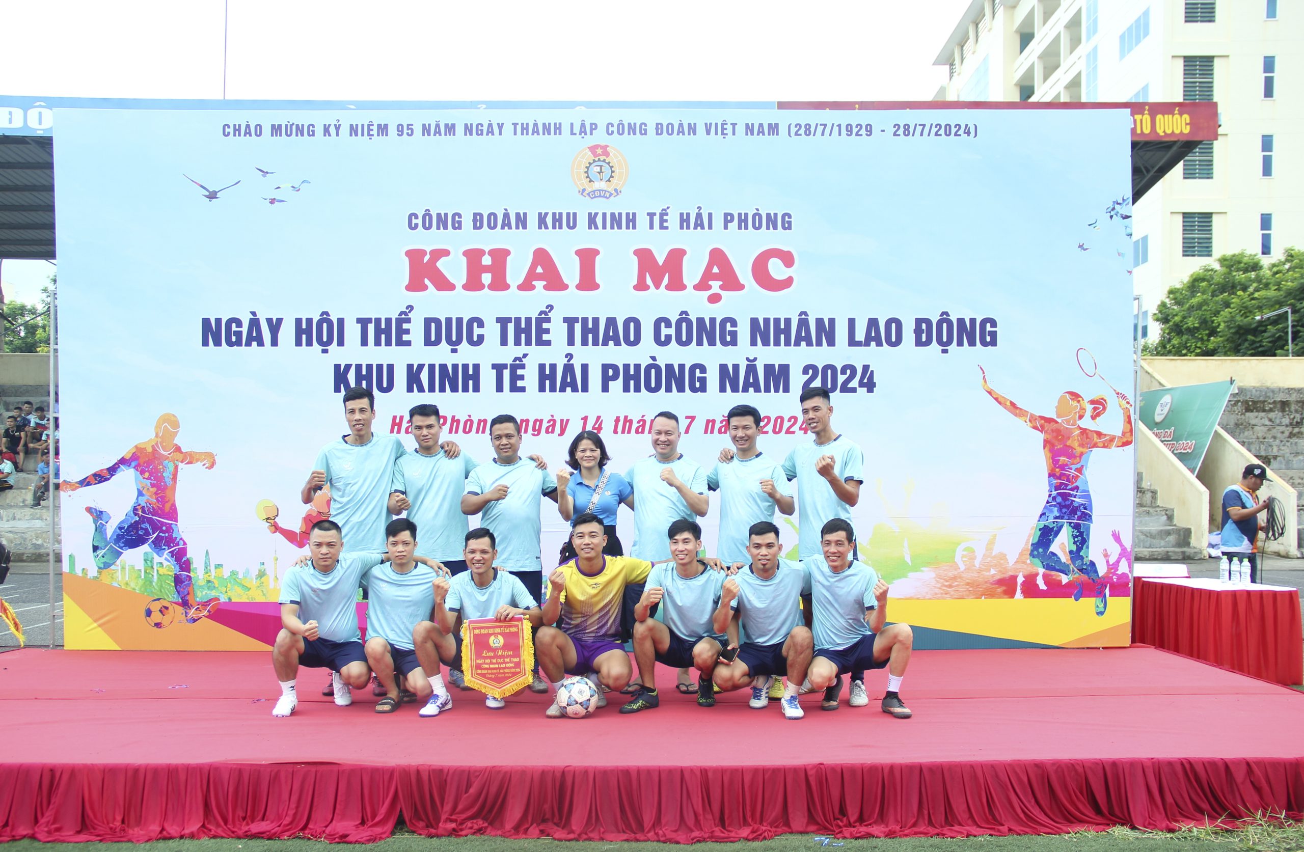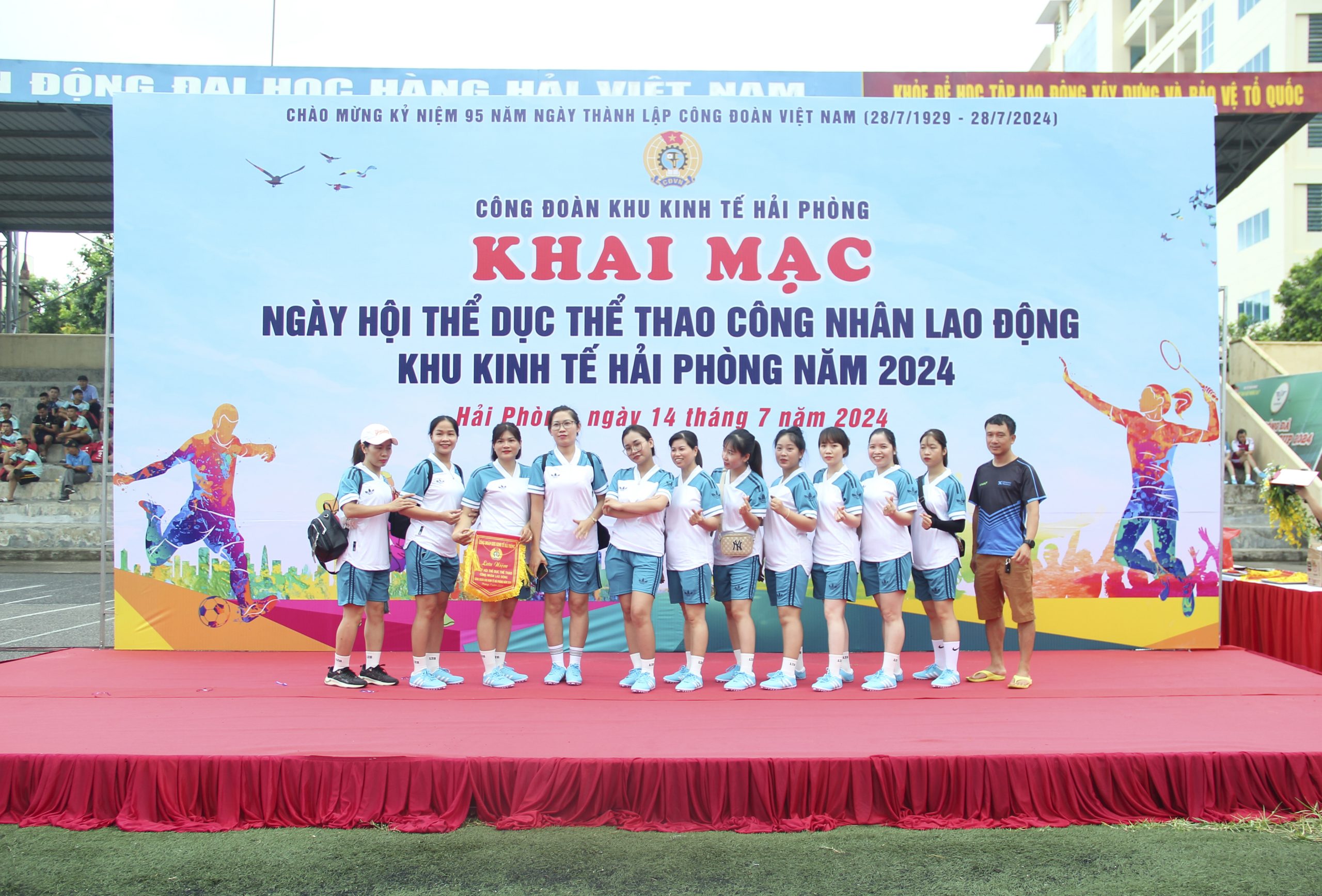 Sáng 14/7/2024, tại Sân bóng đá Trường Đại học Hàng Hải Việt Nam, Công đoàn Khu kinh tế Hải Phòng tổ chức Ngày hội Thể dục thể thao công nhân lao động – Khai mạc Giải bóng đá Nam – Nữ năm 2024.