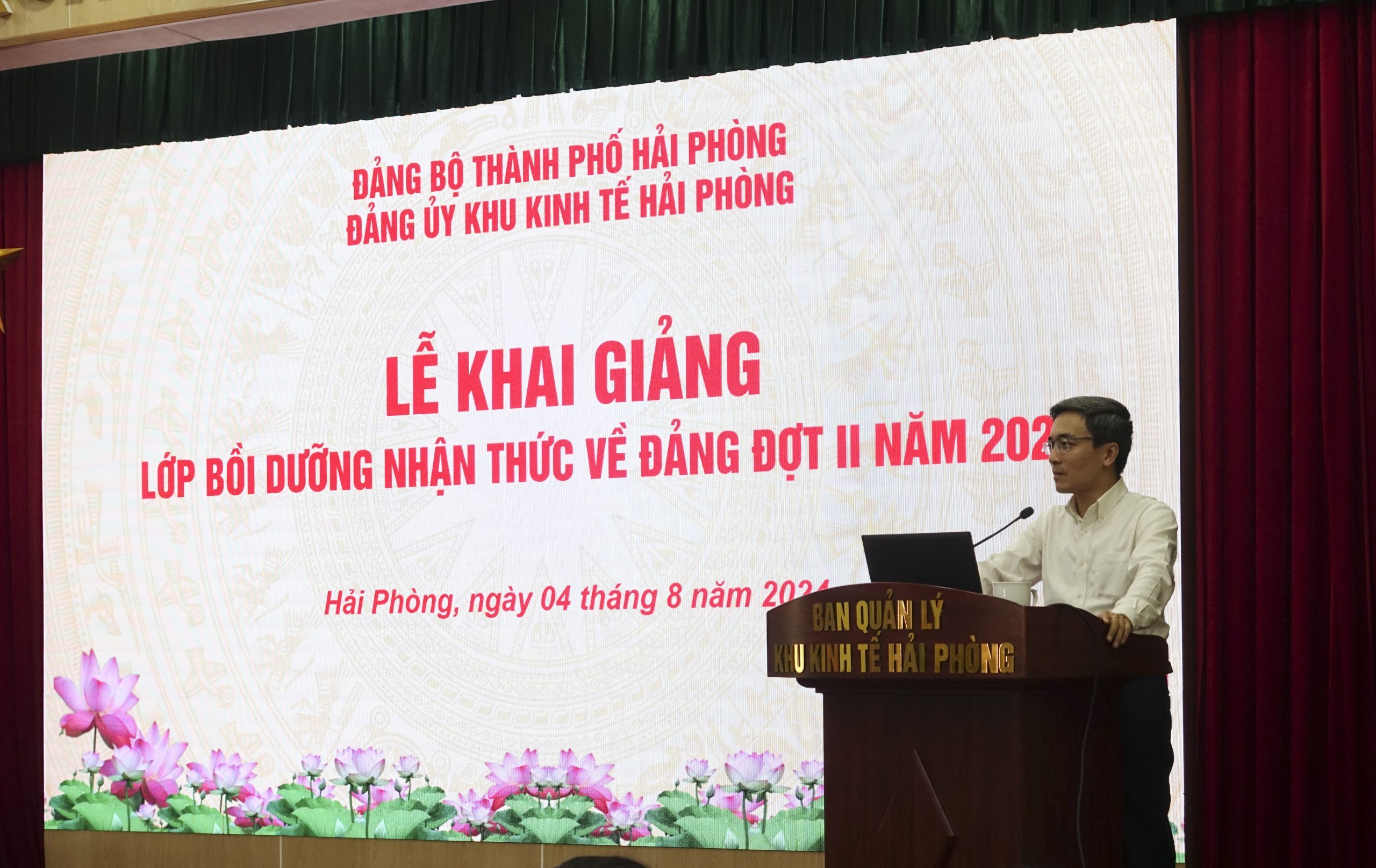 Trong khuôn khổ thực hiện Điều lệ Đảng Cộng sản Việt Nam, Chương trình công tác năm 2024 và Kế hoạch số 44 – KH/ĐU ngày 02/5/2024, Sáng ngày 4/8/2024 Đảng ủy Khu kinh tế Hải Phòng đã long trọng tổ chức lễ khai giảng lớp học bồi dưỡng nhận thức về Đảng đợt 2 năm 2024.