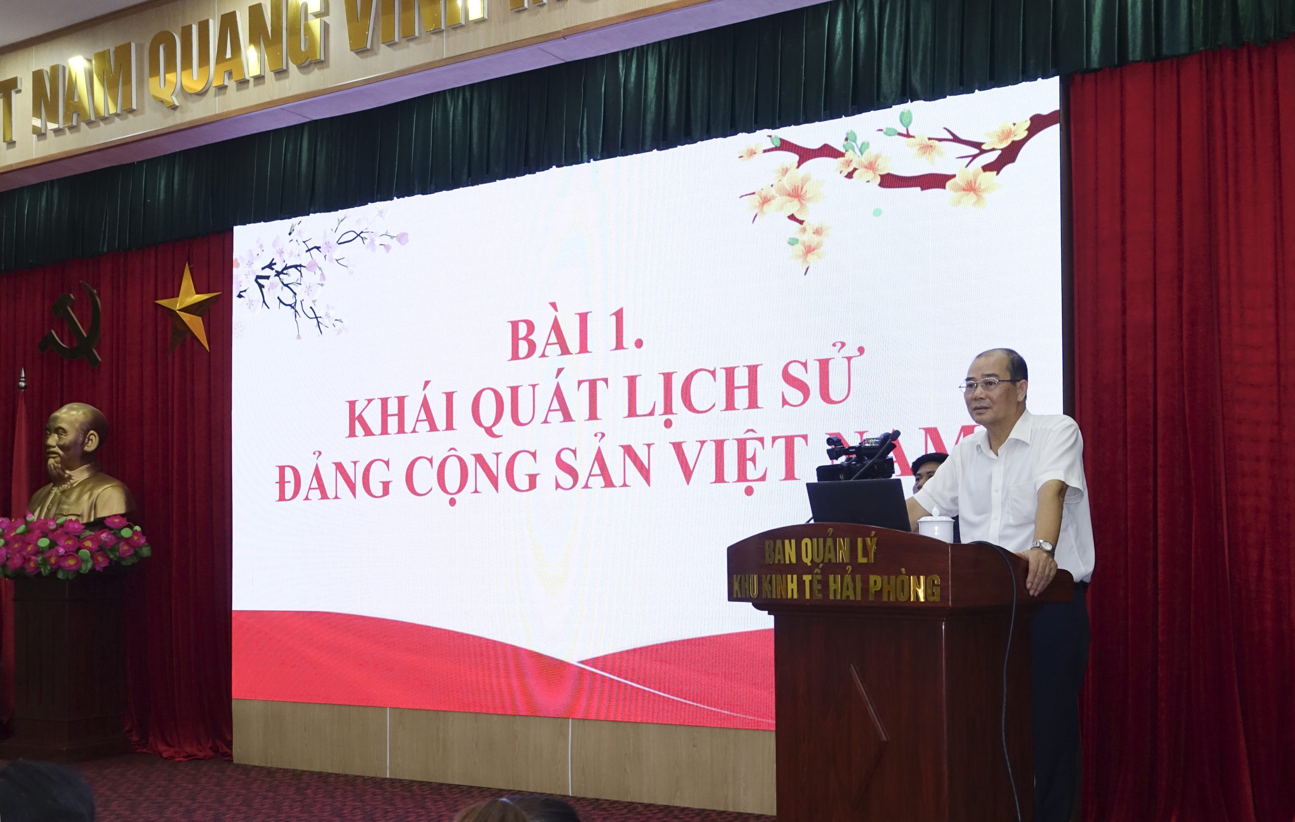 Đồng chí Nguyễn Công Thành, Phó Bí thư thường trực Đảng ủy Khu kinh tế giảng một số nội dung của khóa học