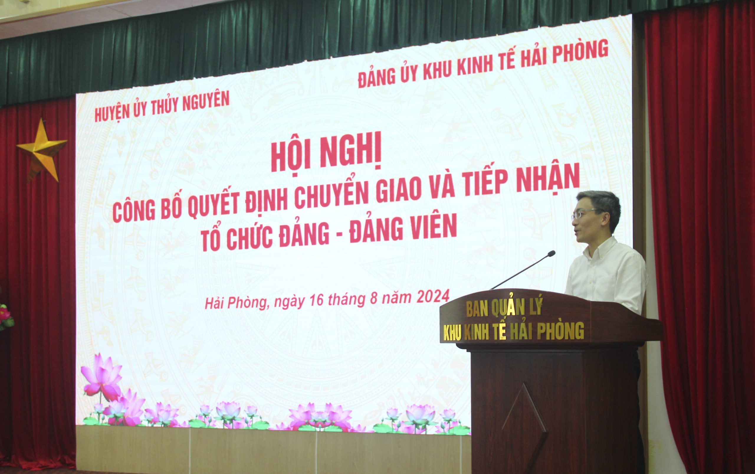 Tại hội nghị, các quyết định chuyển giao và tiếp nhận tổ chức đảng và đảng viên từ Huyện ủy Thủy Nguyên về Đảng ủy Khu kinh tế Hải Phòng đã được công bố và trao tận tay các đại diện chi bộ đảng thuộc các doanh nghiệp như Công ty cổ phần Thép Sao Biển, Công ty cổ phần Đầu tư U&Me, Công ty cổ phần MIT ORGANIZATION và Công ty cổ phần Shinec.