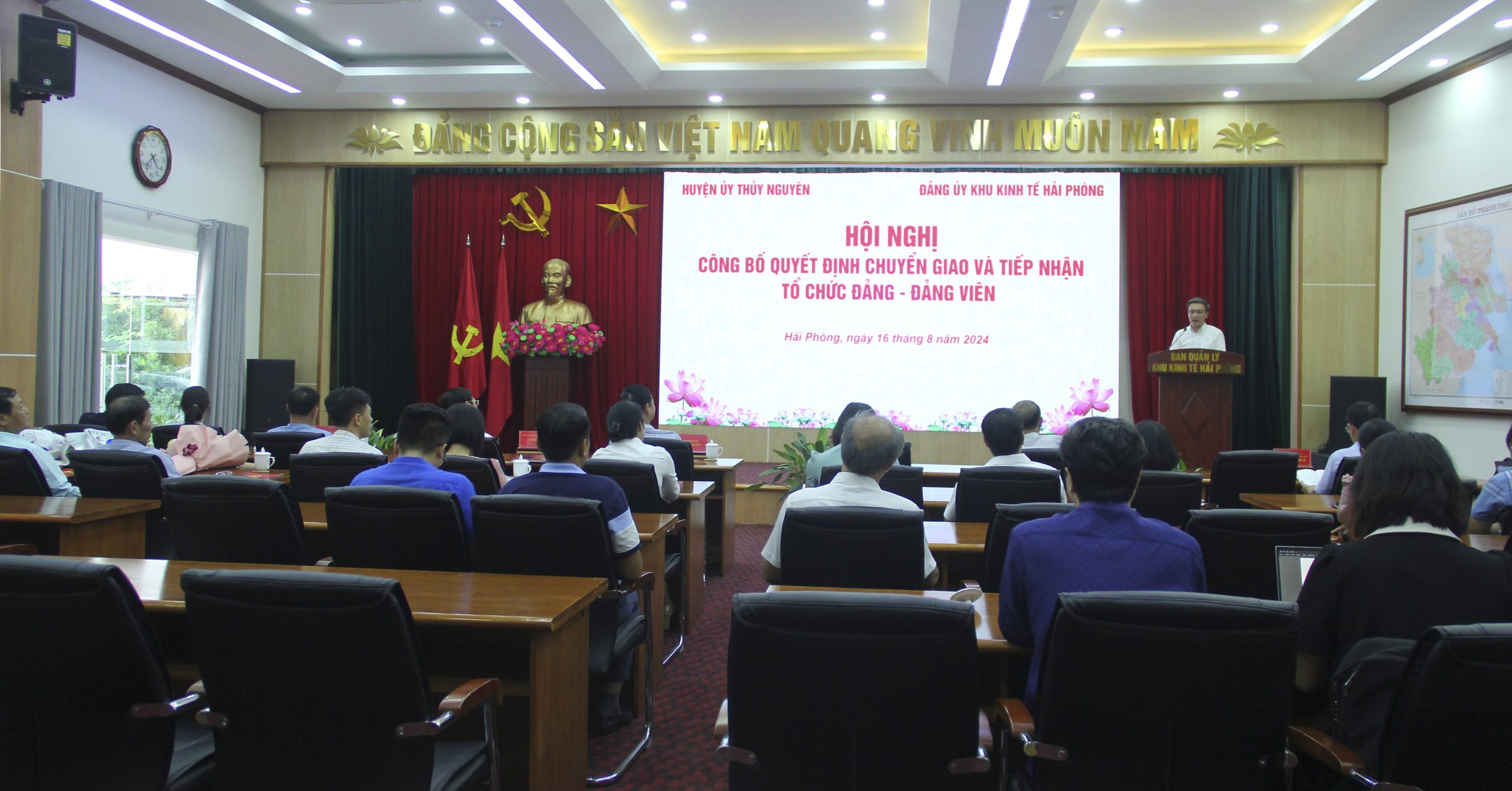 Chiều ngày 16 tháng 8 năm 2024, Ban Quản lý Khu kinh tế Hải Phòng đã tổ chức hội nghị công bố các quyết định chuyển giao và tiếp nhận tổ chức đảng và đảng viên theo Nghị quyết số 28-NQ/TU của Ban Thường vụ Thành ủy Hải Phòng. Đây là một bước đi quan trọng trong việc củng cố và phát triển tổ chức đảng, đoàn thể trong các doanh nghiệp ngoài nhà nước, hợp tác xã và đơn vị sự nghiệp ngoài công lập trên địa bàn.