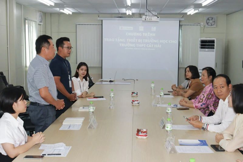 Qua sự kết nối của Ban Quản lý Khu Kinh tế Hải Phòng và Sở Giáo dục-Đào tạo thành phố, Công ty TNHH LG Display Việt Nam Hải Phòng trao tặng tập thể Trường THPT Cát Hải 6 điều hòa, 26 chiếc bàn, 61 chiếc ghế, 1 bàn họp, 16 tủ đựng sách, 5 tủ tài liệu. Qua đó góp phần cải thiện điều kiện làm việc của cán bộ, giáo viên nhà trường; đồng thời tăng cường tủ đựng sách, tủ đựng tài liệu cho các phòng học của học sinh.