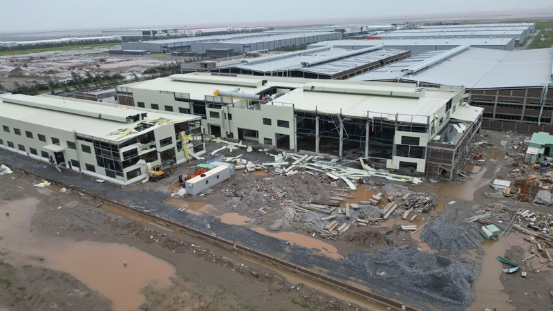 Cận cảnh các nhà xưởng tại KCN Nam Đình Vũ – Hải Phòng bị đổ, tốc mái do ảnh hưởng của bão số 3