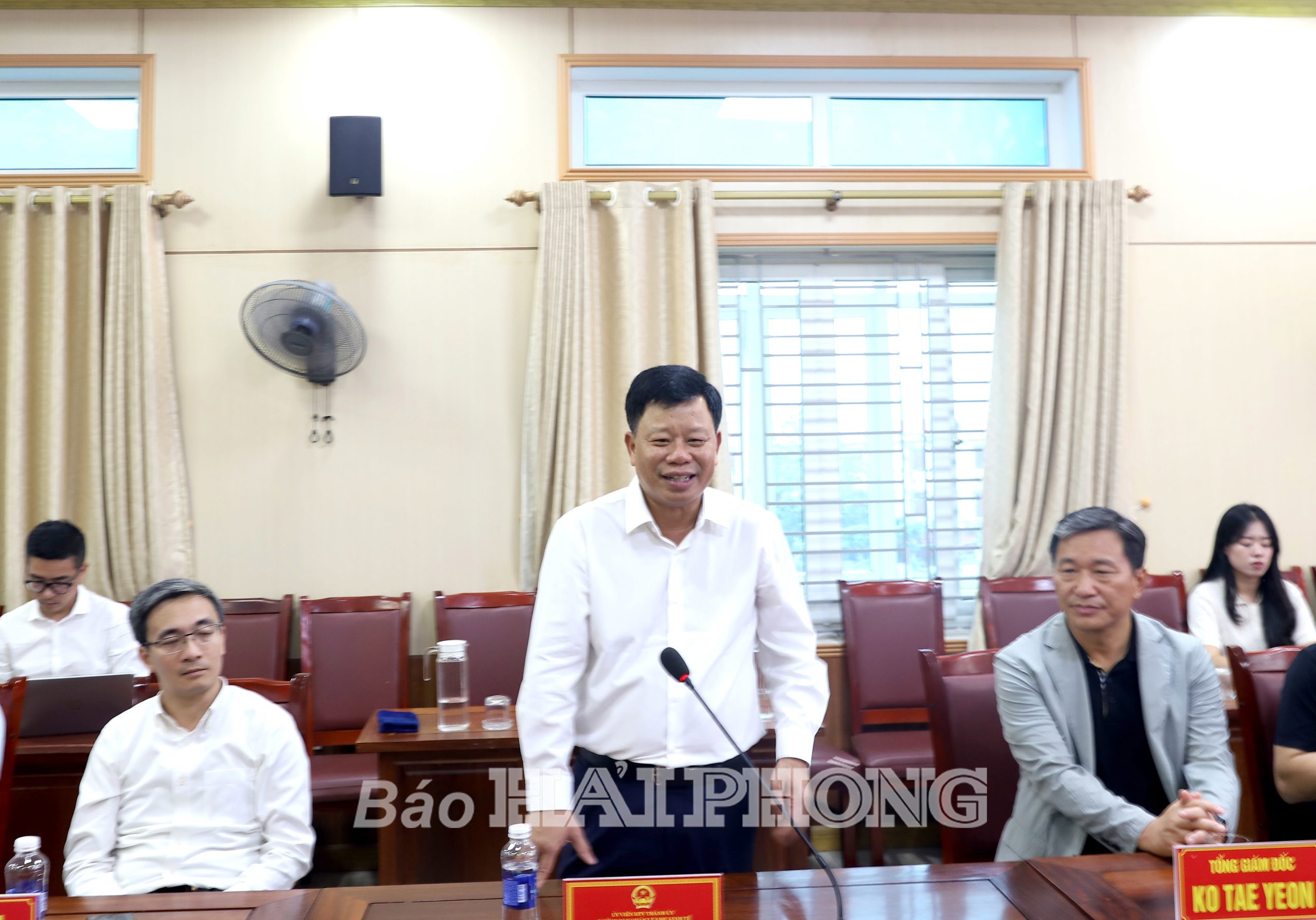 Đồng chí Lê Trung Kiên, Ủy viên Ban Thường vụ Thành ủy, Trưởng Ban Quản lý Khu Kinh tế Hải Phòng; đại diện lãnh đạo các doanh nghiệp Hiệp hội doanh nghiệp Hàn Quốc tại Hải Phòng và huyện Tiên Lãng dự hội nghị.