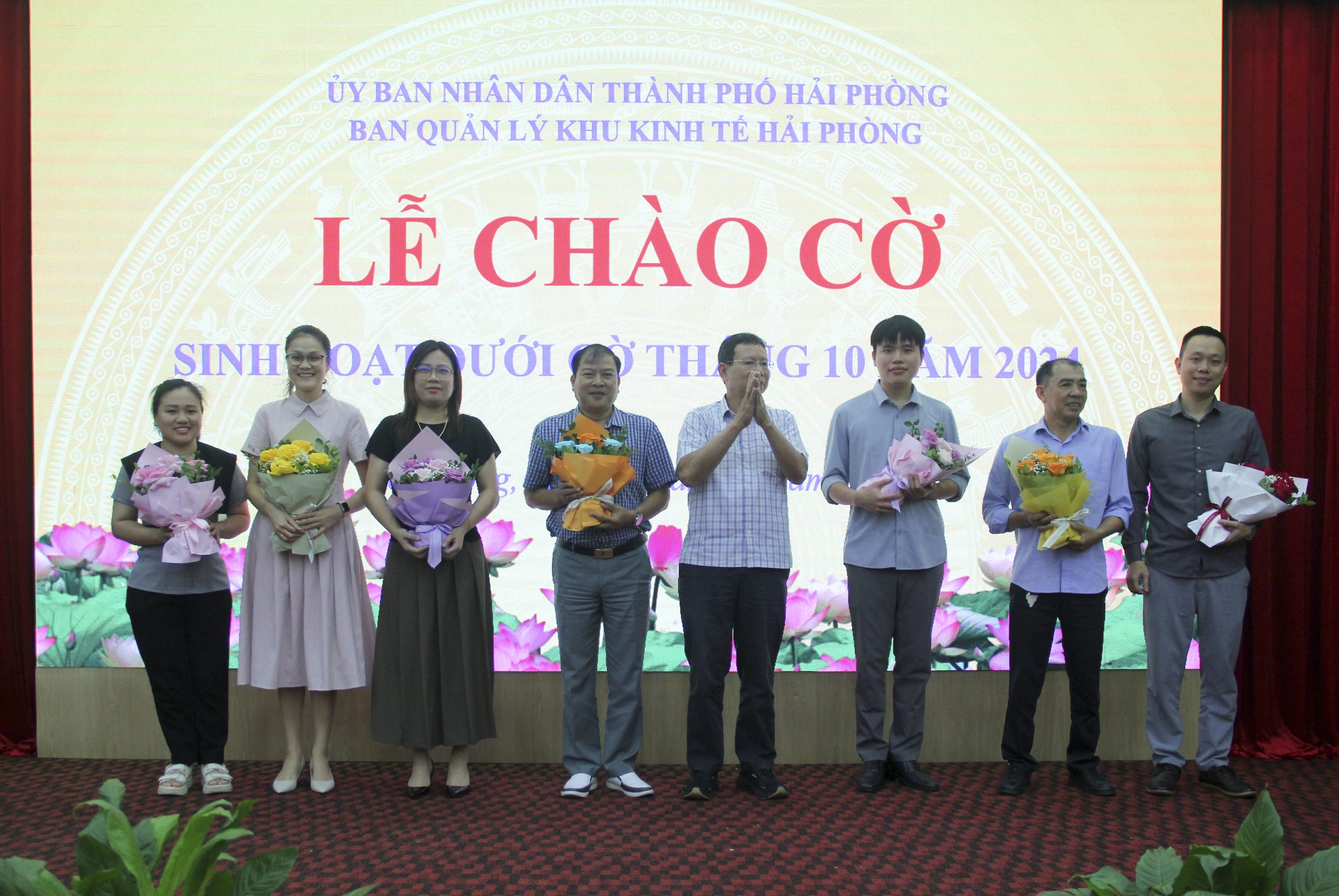 Lãnh đạo Ban Quản lý Khu kinh tế Hải Phòng tặng hoa chúc mừng sinh nhật các đồng chí sinh nhật trong tháng 9 và tháng 10