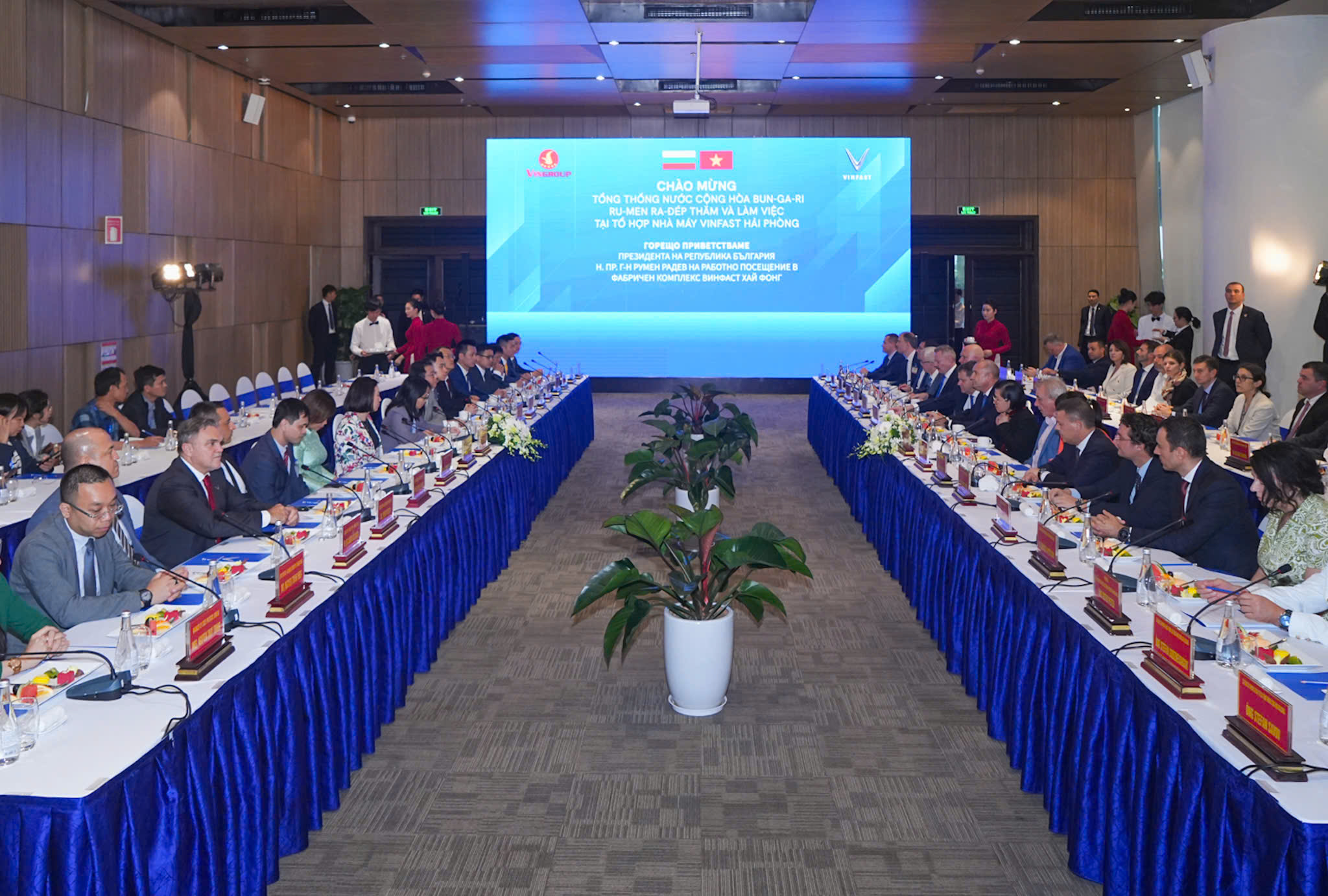 Tiếp đó, Tổng thống Cộng hòa Bulgaria, Rumen Radev và Đoàn công tác đã có chuyến thăm và làm việc tại Tổ hợp Nhà máy VinFast Hải Phòng – một trong những nhà máy sản xuất ô tô điện hiện đại nhất Việt Nam. Chuyến thăm nhằm thúc đẩy hợp tác kinh tế, công nghệ và năng lượng giữa hai nước.