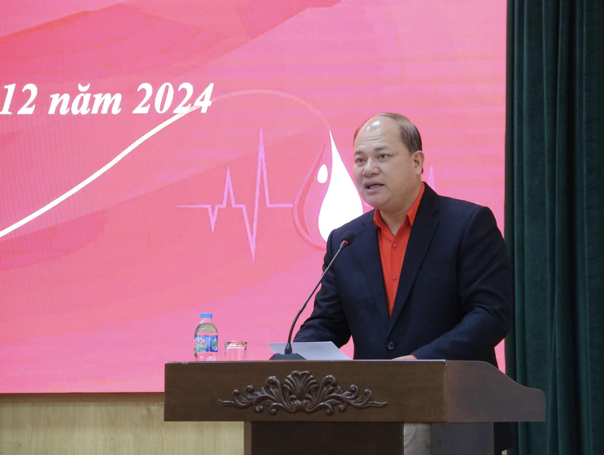 Đồng chí Bùi Mạnh Phúc, Chủ tịch Hội Chữ thập đỏ thành phố, Phó trưởng ban Thường trực ban vận động hiến máu nhân đạo thành phố phát biểu khai mạc