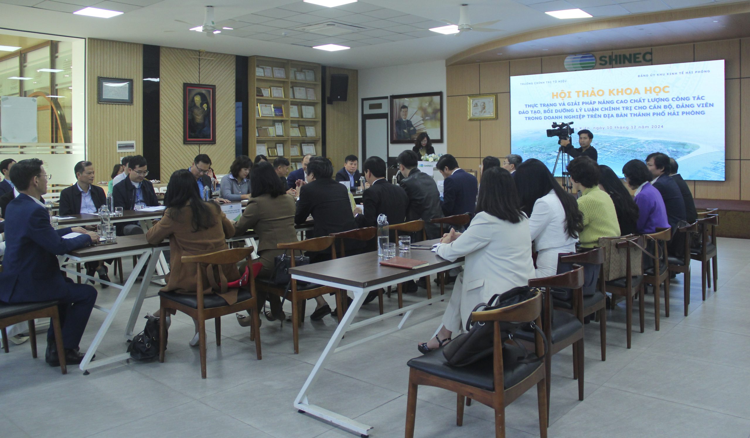 Nhằm tăng cường chất lượng công tác đào tạo, bồi dưỡng lý luận chính trị cho cán bộ, đảng viên trong các doanh nghiệp, Sáng ngày 10 tháng 12 năm 2024, Đảng ủy Khu kinh tế Hải Phòng phối hợp với Trường Chính trị Tô Hiệu đã đồng chủ trì Tọa đàm khoa học với chủ đề: “Thực trạng và giải pháp nâng cao chất lượng công tác đào tạo, bồi dưỡng lý luận chính trị cho cán bộ, đảng viên trong doanh nghiệp trên địa bàn thành phố Hải Phòng”.