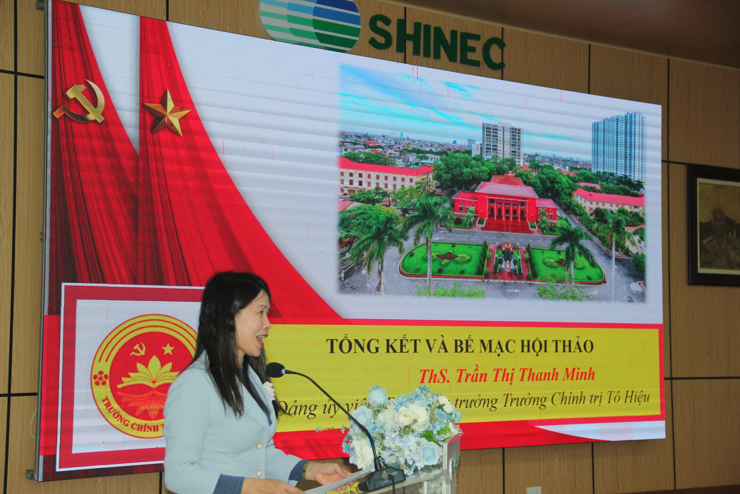 Đồng chí Trần thị Thanh Mình, Phó hiệu trưởng trường Chính trị Tô Hiệu phát biểu tổng kết bế mạc Hội thảo