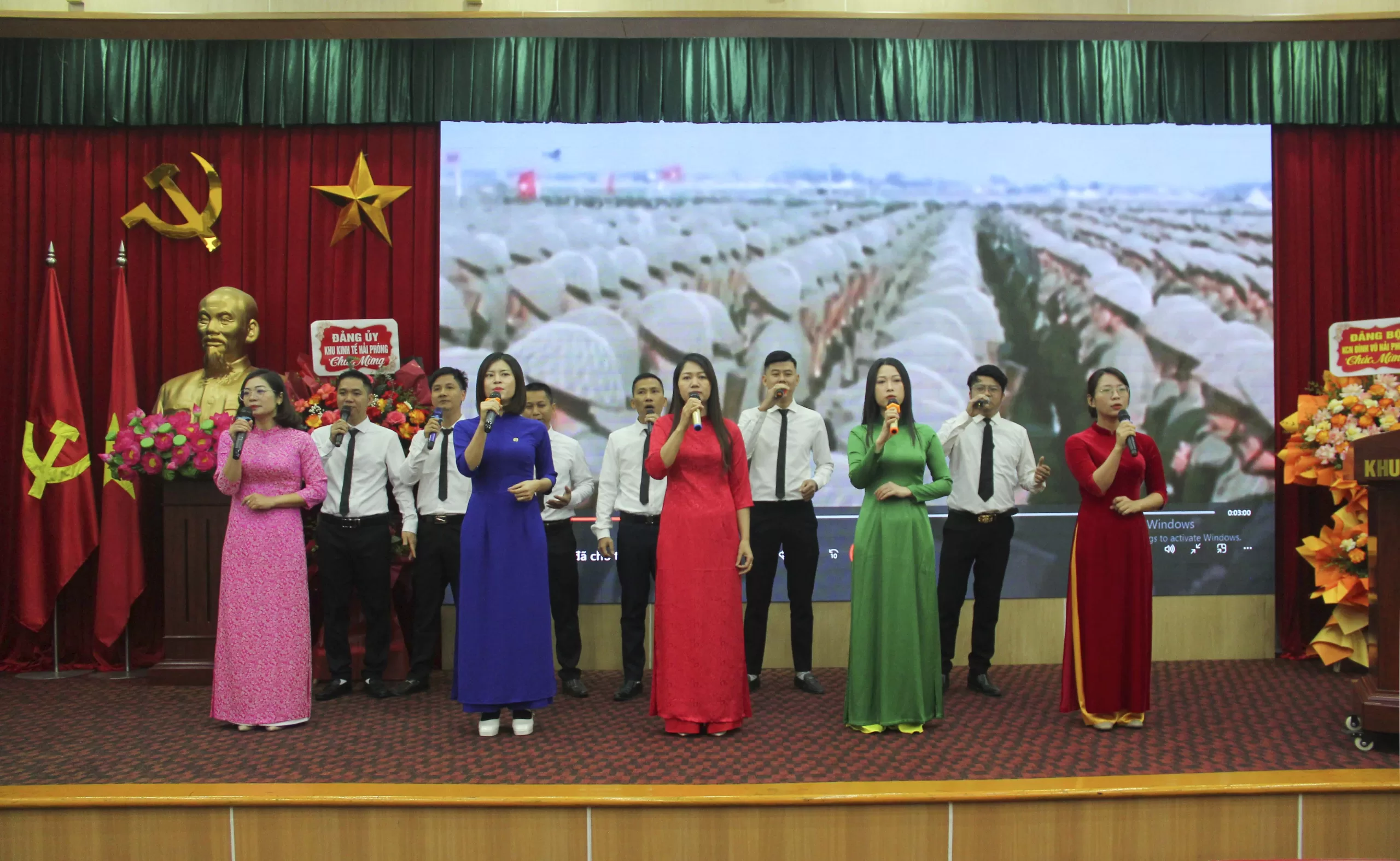 Đội văn nghệ xung kính biểu diễn các tiết mục chào mừng.