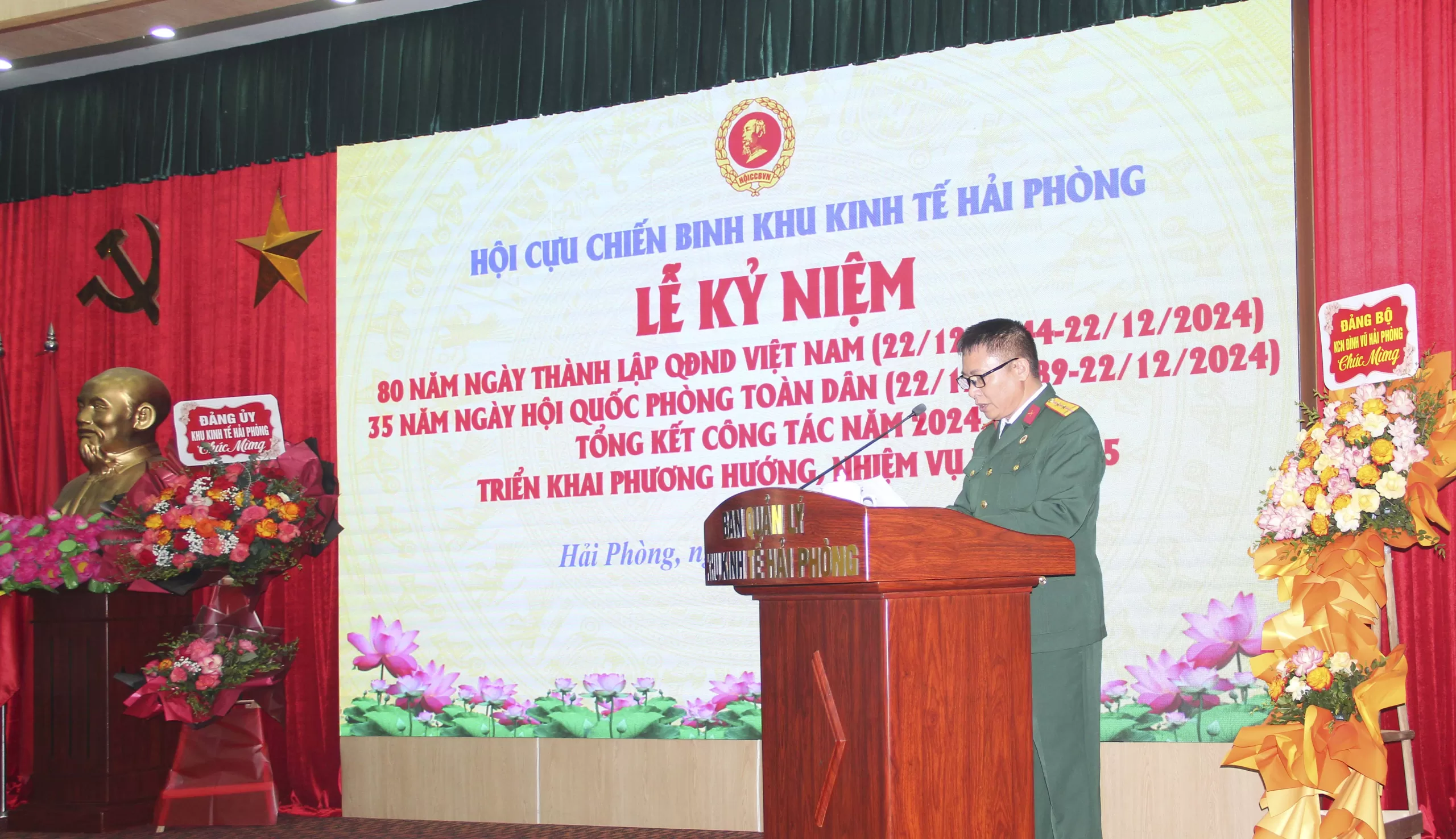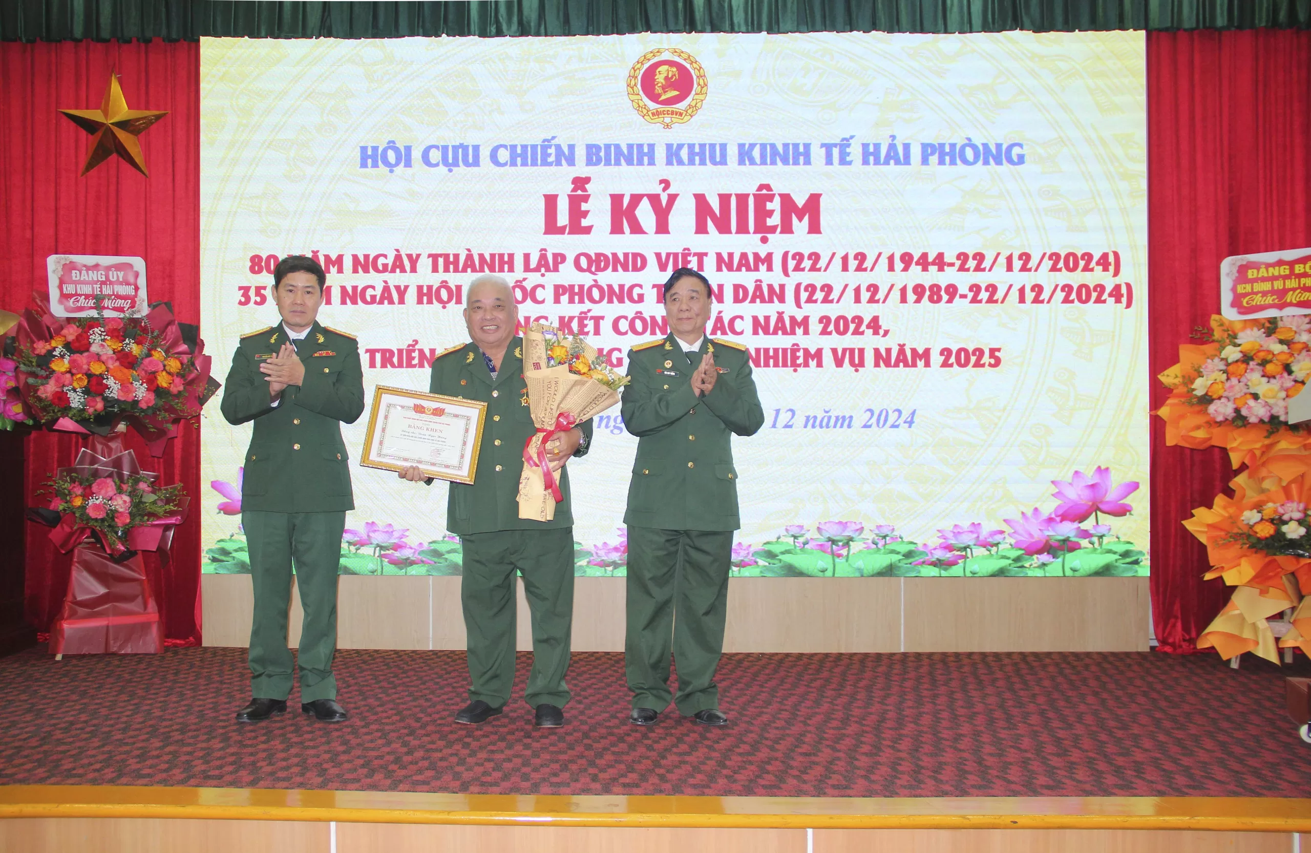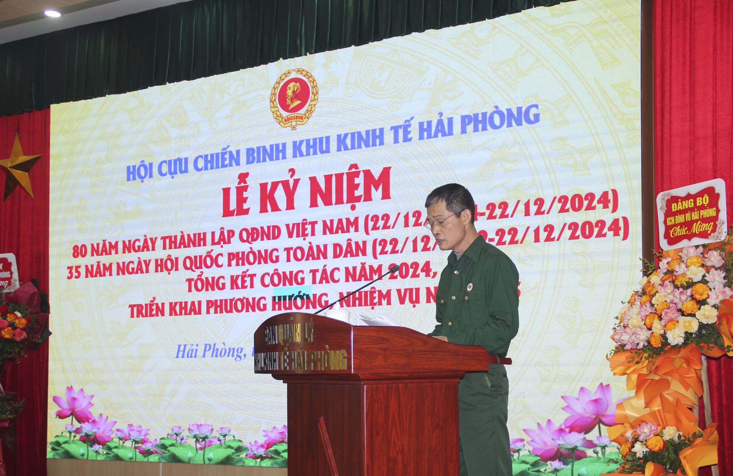 Sáng ngày 22/12/2024, tại Hội trường Ban Quản lý Khu kinh tế Hải Phòng (số 24, Cù Chính Lan, Minh Khai, Hồng Bàng, Hải Phòng), Hội Cựu chiến binh Khu kinh tế Hải Phòng đã long trọng tổ chức Lễ kỷ niệm 80 năm Ngày thành lập Quân đội Nhân dân Việt Nam (22/12/1944 – 22/12/2024), 35 năm Ngày hội Quốc phòng toàn dân và tổng kết công tác Hội năm 2024.