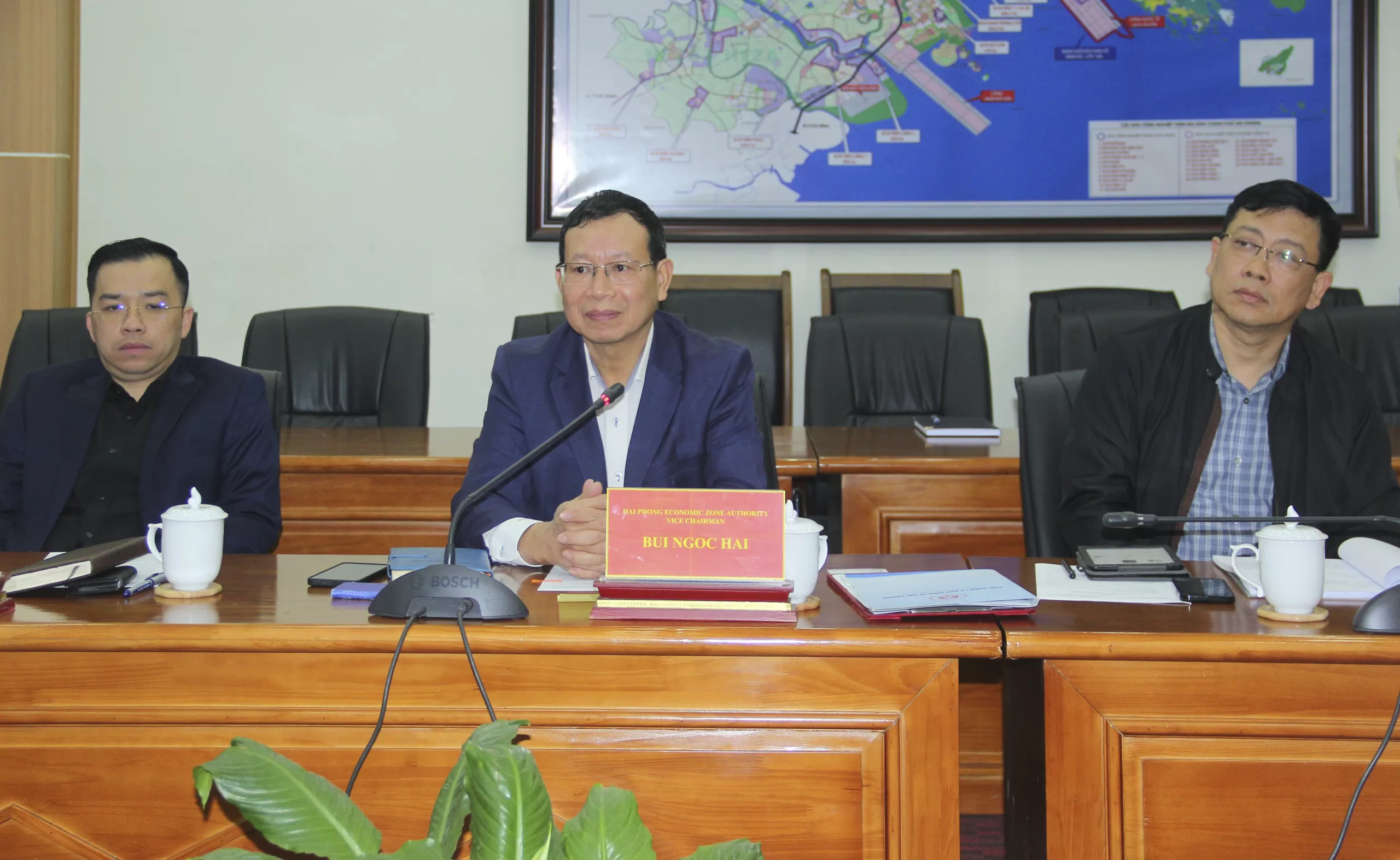 Về phía Ban Quản lý Khu kinh tế Hải Phòng có đồng chí Bùi Ngọc Hải, Phó Trưởng ban thường trực Ban Quản lý Khu kinh tế Hải Phòng và Lãnh đạo các phòng chuyên môn thuộc Ban Quản lý.
