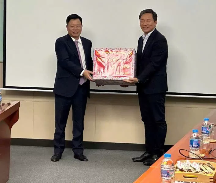 Trưởng Ban Quản lý Khu kinh tế Hải Phòng và các doanh nghiệp trao đổi, thảo luận các cơ hội hợp tác trong năm mới.