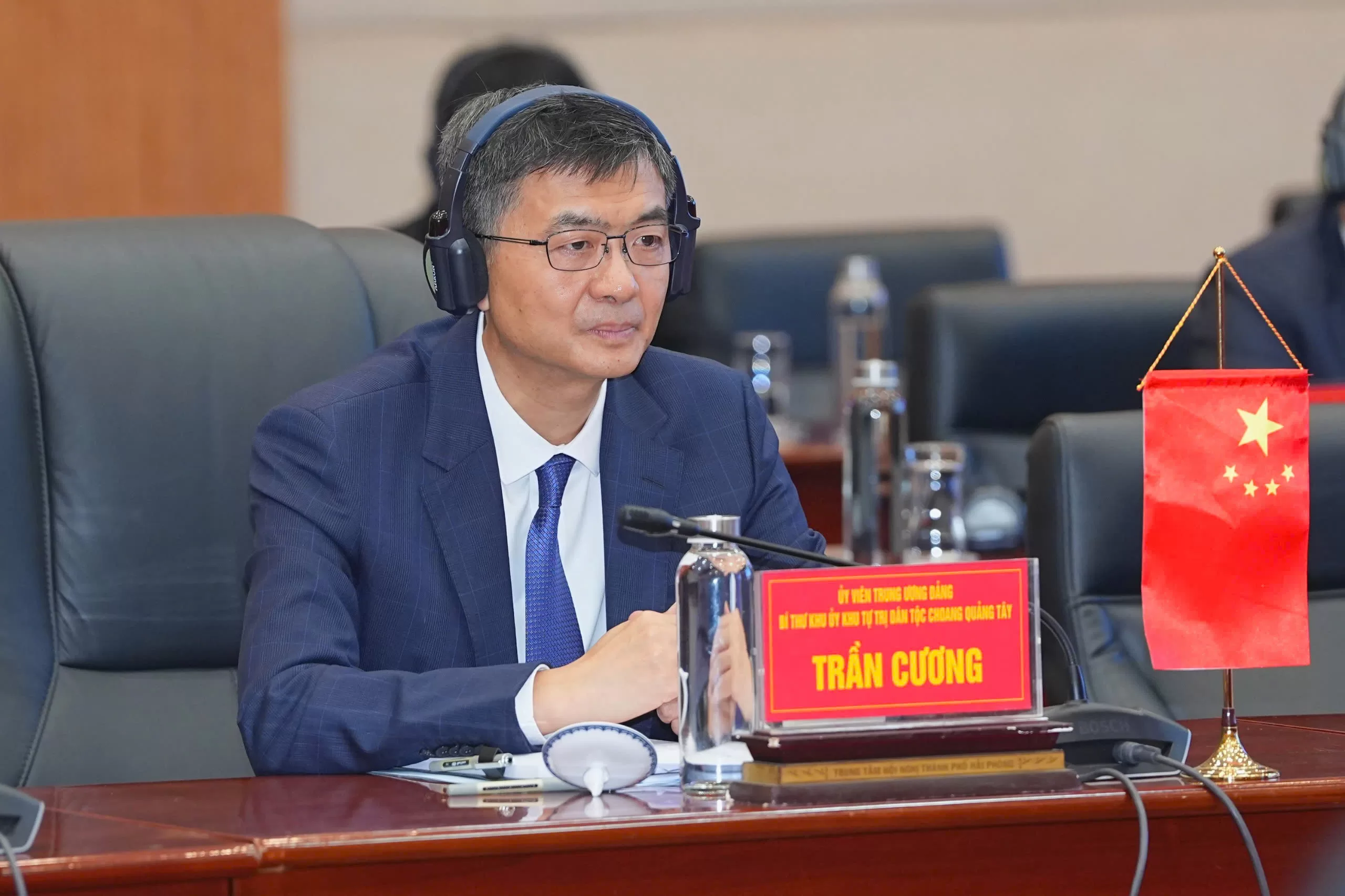 Đồng chí Trần Cương, Bí thư Khu ủy Khu tự trị dân tộc Choang, tỉnh Quảng Tây, Trung Quốc trân trọng cảm ơn sự đón tiếp trọng thị của lãnh đạo thành phố Hải Phòng đối với đoàn. Đồng thời cho biết, đây là lần đầu tiên đồng chí tới Hải Phòng nhưng đặc biệt ấn tượng trước sự phát triển mạnh mẽ của thành phố Cảng biển lớn nhất phía Bắc Việt Nam, luôn năng động, đi đầu trên các lĩnh vực.
