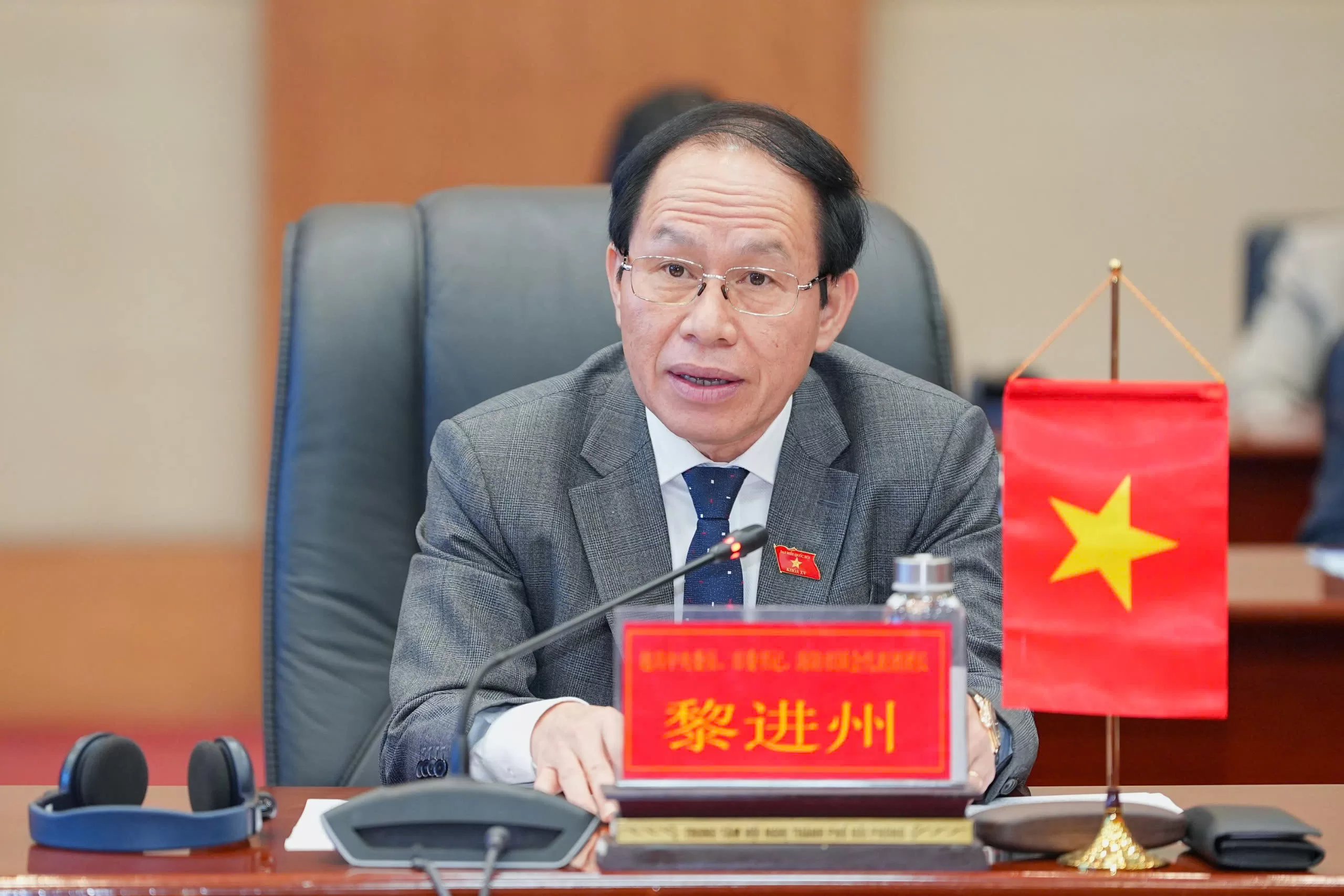 Đồng chí Bí thư Thành ủy Hải Phòng giới thiệu với đoàn về những kết quả nổi bật của Hải Phòng trong thời gian qua, đặc biệt là những tiềm năng, thế mạnh của Hải Phòng và những cơ hội hợp tác giữa hai bên. Đồng thời nhấn mạnh, sau chuyến thăm của đồng chí Lưu Ninh, Bí thư Đảng ủy Khu tự trị dân tộc Choang tháng 8- 2024, nhiều nội dung hợp tác đã được triển khai, trong đó có việc mở đường bay thẳng Nam Ninh- Hải Phòng.