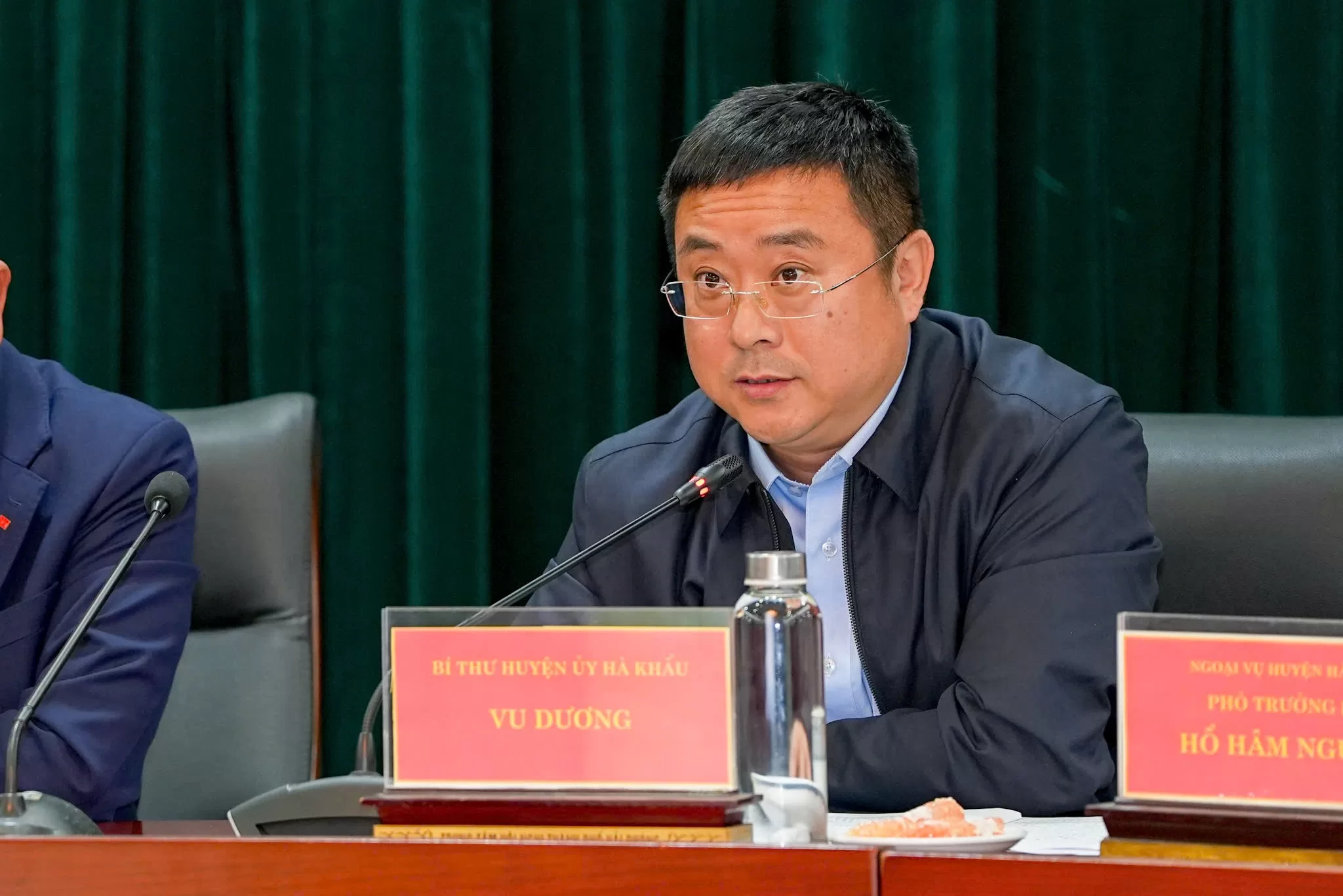 Phát biểu tại buổi làm việc, ông Vu Dương, Bí thư Huyện ủy Hà Khẩu bày tỏ cảm ơn trước sự đón tiếp trọng thị và chu đáo của thành phố Hải Phòng dành cho đoàn công tác. Ông đánh giá cao sự phát triển vượt bậc của Hải Phòng trong những năm gần đây, đặc biệt trong lĩnh vực hạ tầng giao thông, công nghiệp và logistics, đồng thời bày tỏ tin tưởng rằng mối quan hệ hợp tác giữa hai địa phương sẽ ngày càng được củng cố và phát triển toàn diện.