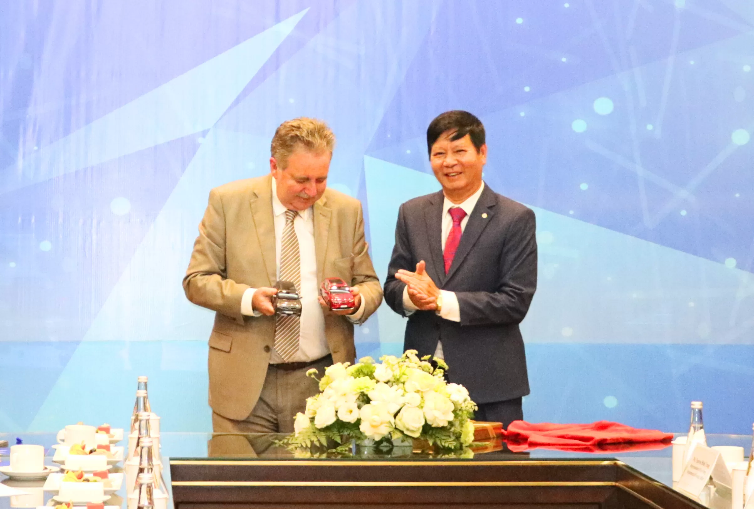 Nhân dịp này, ông Lê Khắc Hiệp, Phó Chủ tịch Tập đoàn Vingroup trao quà lưu niệm là mô hình xe ô tô VinFast tặng ngài Rudi Vervoort, Bộ trưởng Thủ hiến, Chính phủ vùng Thủ đô Brussels, Vương quốc Bỉ.