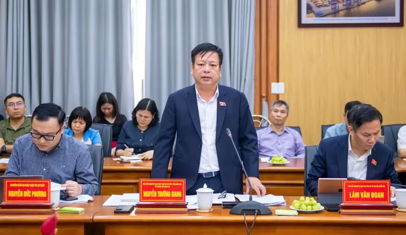 Đồng chí Nguyễn Trường Giang, Phó chủ nhiệm Ủy ban Pháp luật và Tư pháp của Quốc hội chủ trì giám sát về phát triển và sử dụng nguồn nhân lực tại Ban Quản lý Khu Kinh tế Hải Phòng.