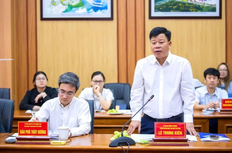 Đồng chí Lê Trung Kiên, Trưởng ban Ban Quản lý Khu kinh tế Hải Phòng phát biểu tại cuộc làm việc.